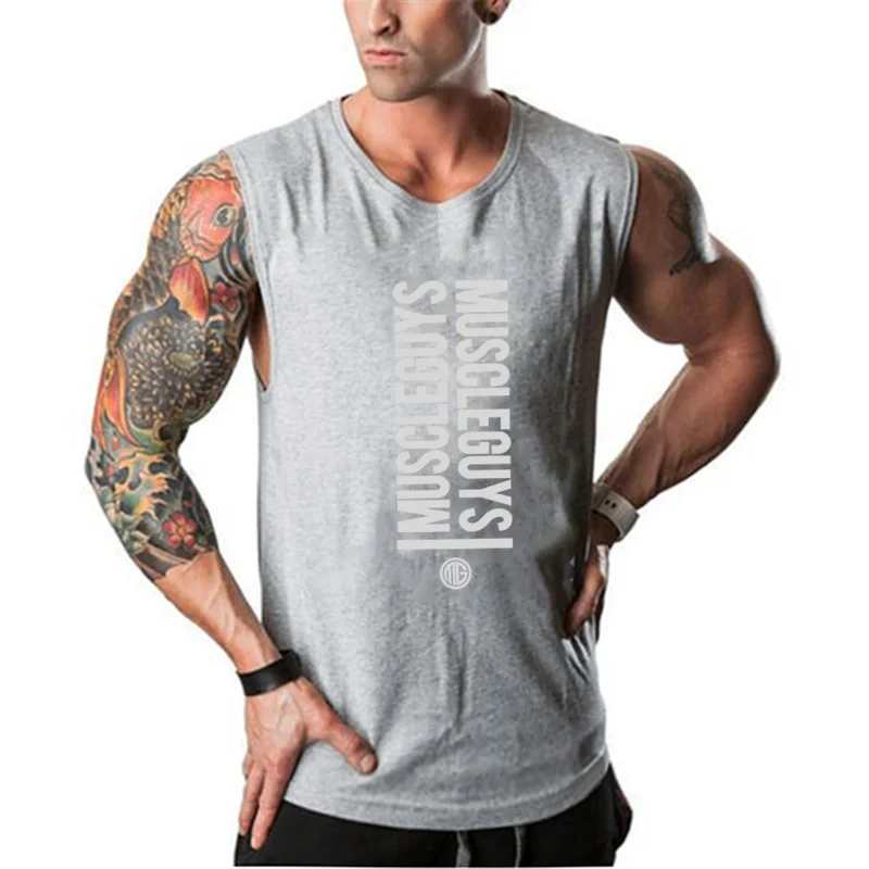 Топ Мужской для фитнеса, хлопковая майка-стринги для бодибилдинга, ...