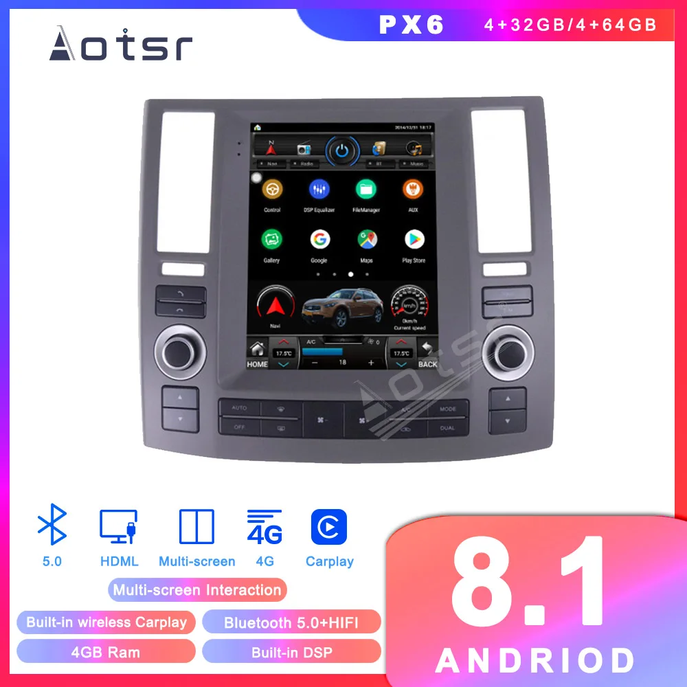 Мультимедийный плеер, Android 10, в стиле Tesla, с GPS-навигацией, для Infiniti FX35, FX45, FX25, FX37, 2006, 2007, 2008, 2009