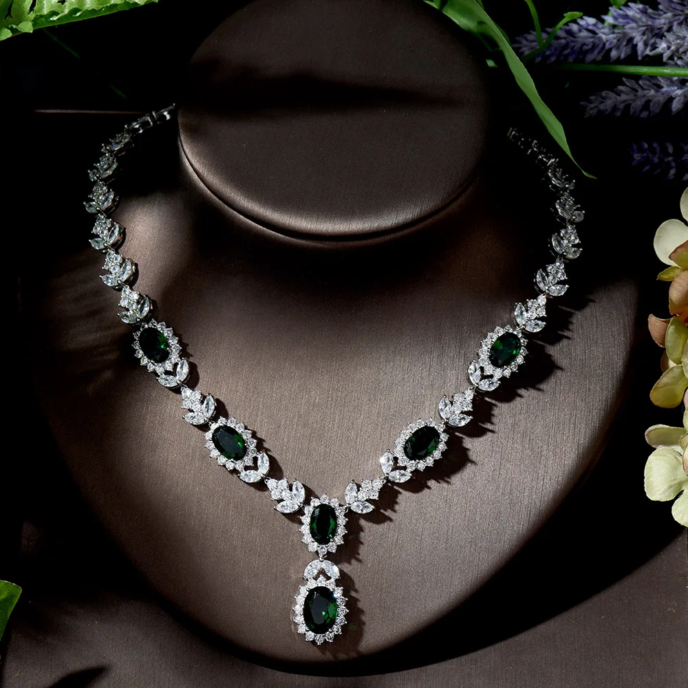 HIBRIDE Роскошный прозрачный кристалл циркония серьги и ожерелье на...