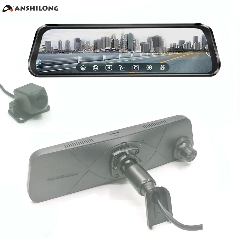 Зеркало заднего вида ANSHILONG, видеорегистратор с полностью сенсорным экраном 9,66 дюйма, FHD 1080P, со специальным кронштейном