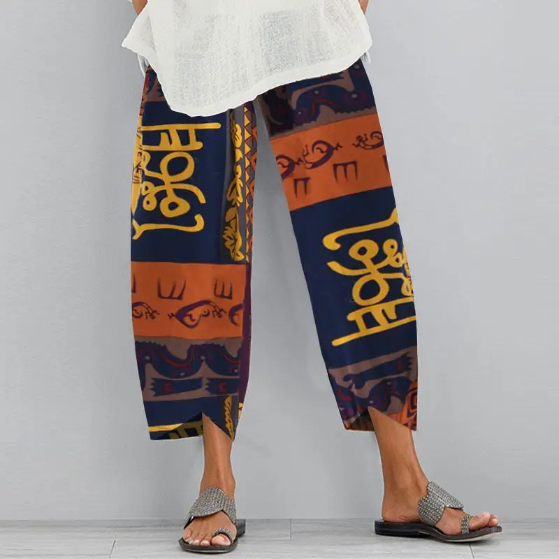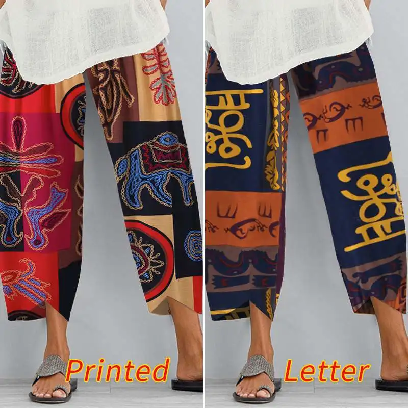 Брюки ZANZEA Женские винтажные с эластичным поясом, длинные штаны с цветочным принтом, повседневные брюки-султанки, палаццо, на лето