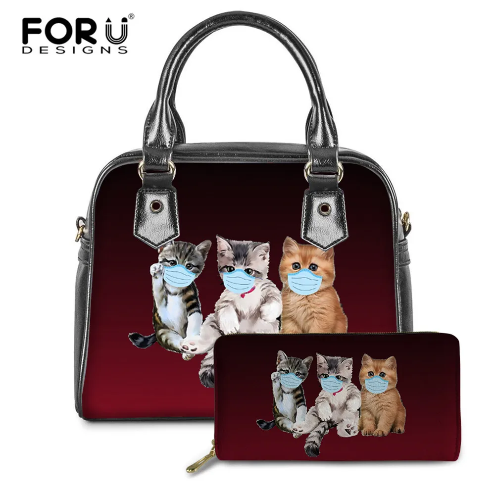 FORUDESIGNSградиент красного цвета с принтом милых животных кошка маска дизайнерские женские сумки с высокой ручкой, искусственная кожа женские сумки через плечо вместительные сумки