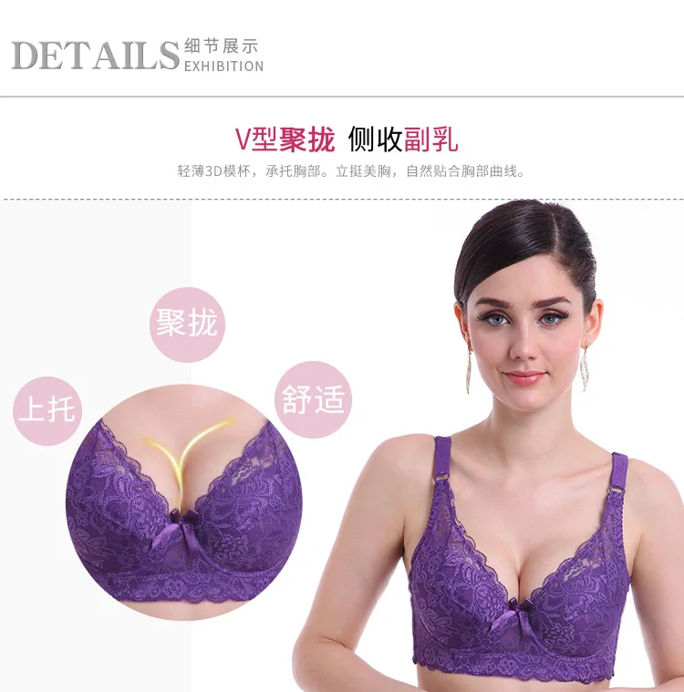 Наименование товара: сексуальный бюстгальтер с эффектом пуш-ап, женский кружевной бюстгальтер, бюстгальтер без косточек, нижнее белье с эффектом пуш-ап, женский бюстгальтер с подкладкой, нижнее белье, бюстгальтер 75-105CD Размер браслета: 34 = 75 36 = 80 38 = 85 40 = 90 42 = 95 44 = 100 46 = 105 Размер чашки: B C D Материал: полиэстер + хлопок + спандекс + нейлон + кружево Посылка: бюстгальтер * 1 Крючок и глаза: четыре Напоминание: этот бюстгальтер азиатского размера, пожалуйста, берите на один размер больше. Например, 36/80D в США, 38/85D для этого.