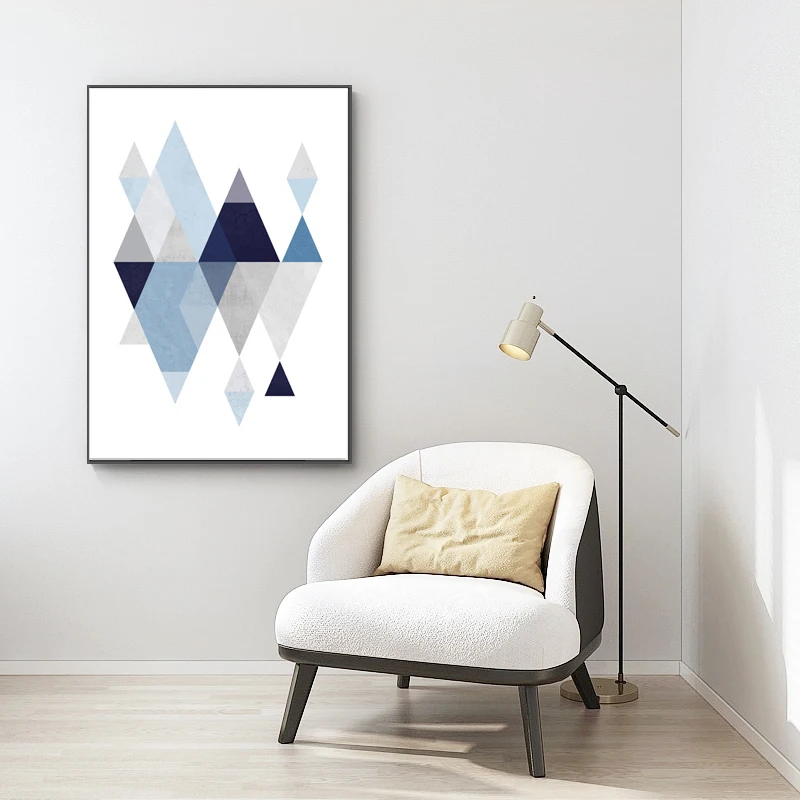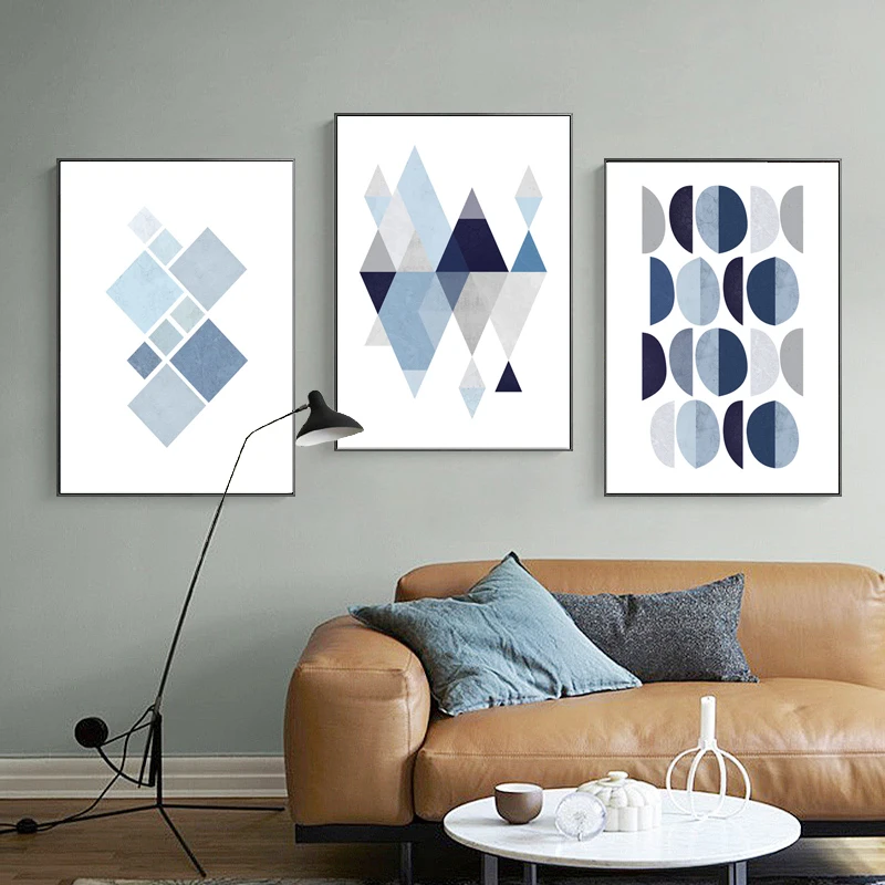 Абстрактная синяя геометрическая форма искусство винтажный принт плакат минималистский современный настенный художественный Рисунок нордический домашний Декор Картина без рамки