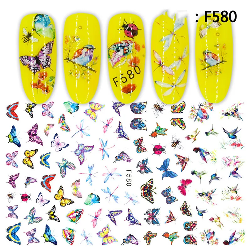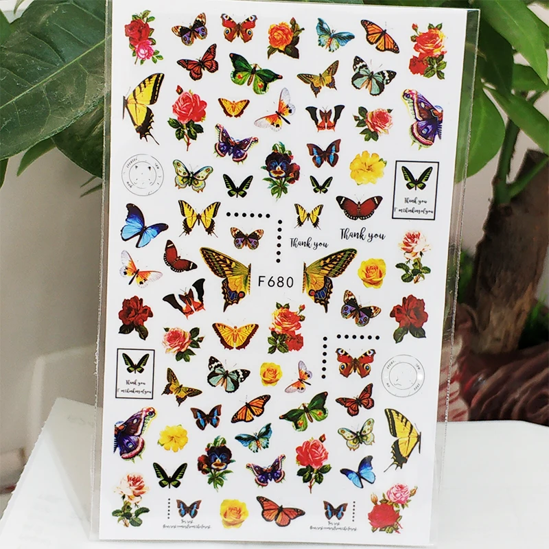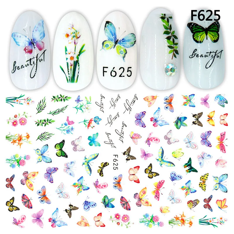 3D наклейки для ногтей, наклейки, Бабочка, цветок, трава, украшения для ногтей, наклейки, слайдеры, аксессуары для маникюра, украшения для ногтей