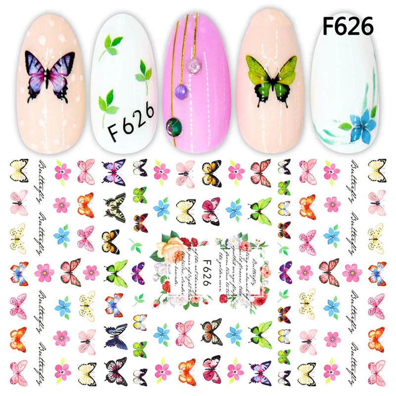 3D наклейки для ногтей, наклейки, красочные бабочки, цветы, украшения для ногтей, наклейки, слайдеры, аксессуары для маникюра, украшения для ногтей
