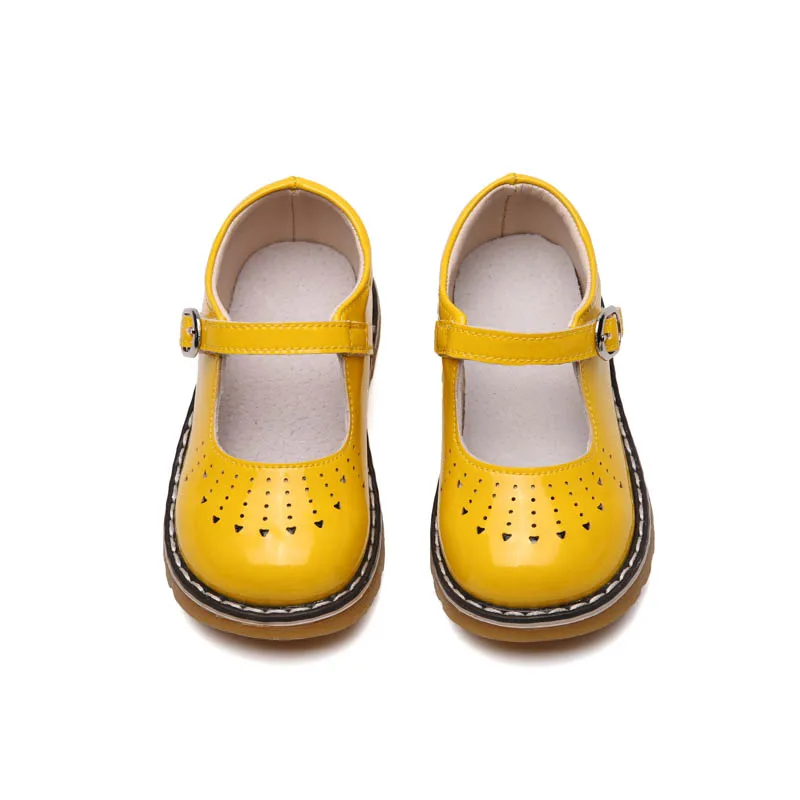 Туфли детские кожаные для девочек, Мэри Джейн, повседневная школьная обувь с желтыми сердечками, белые, черные, розовые, SandQ 2020