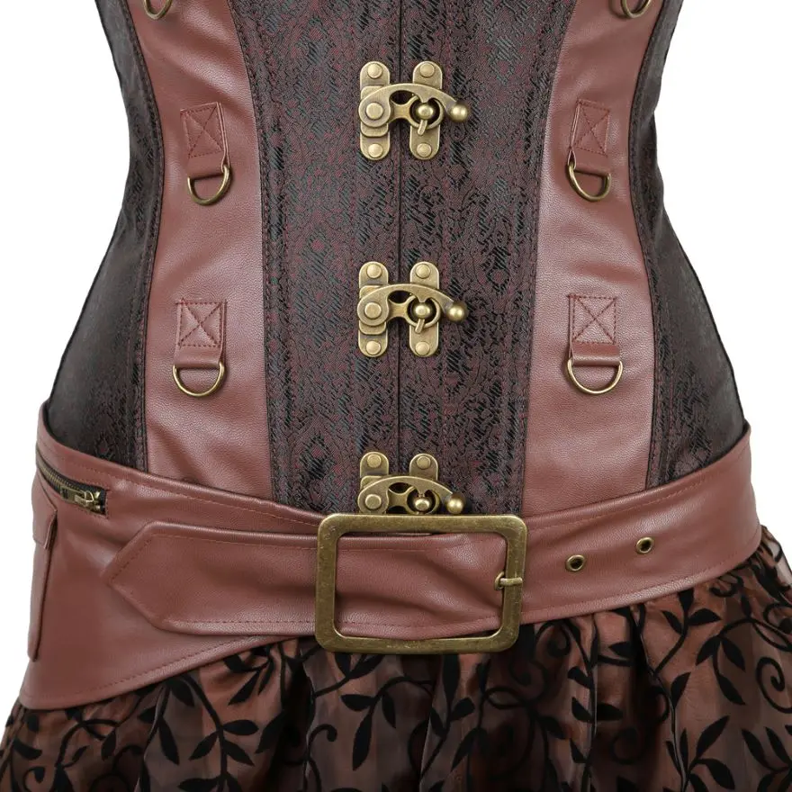 NameSteampunk Faux Leather Corset With Asymmencal Skirt Set