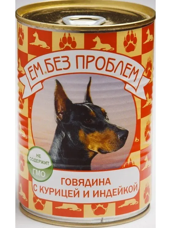 Ем без проблем консервы для собак (паштет), Говядина, курица и индейка, 410 г.