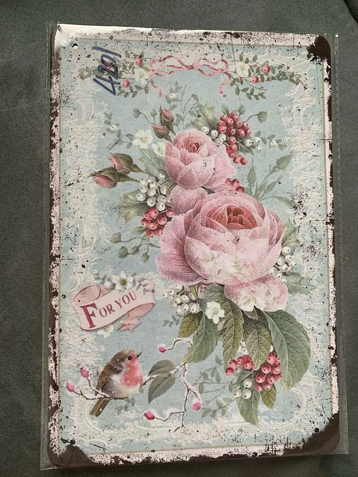 Винтажная жестяная вывеска с цветами, домашний декор, ретро металли...