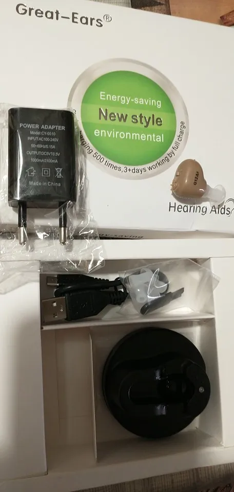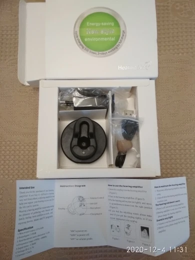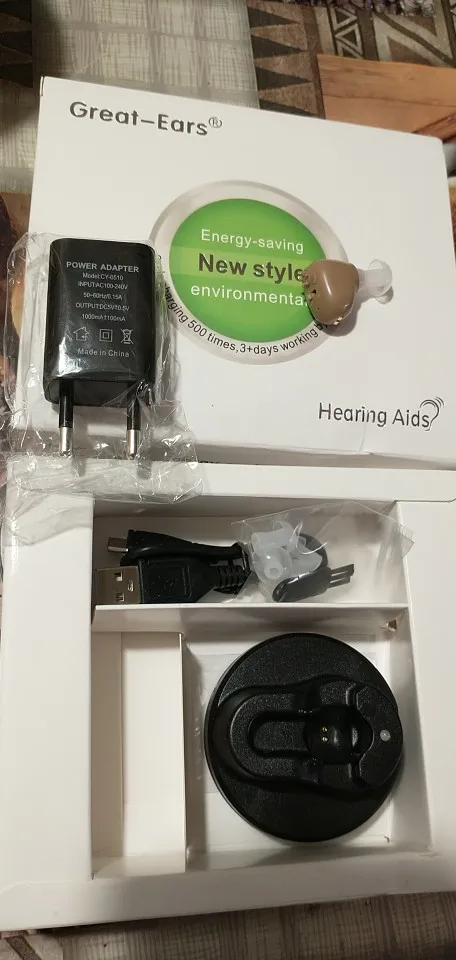 Товар пришёл в запечатанной заводской упаковке, это очень приятно ) в коробке были все аксессуары для работы и аппарат, зарядили первый раз как написано в инструкции 6 часов, аппарат работает! Сначала не могли подобрать насадку в ухо и был свист, поставили самую маленькую и свист прекратился! Бабушке 81 год, сама включает, сама заряжает, очень удобно и теперь хорошо слышит телевизор и продавцов в продуктовом магазине! Стоит своих денег однозначно!