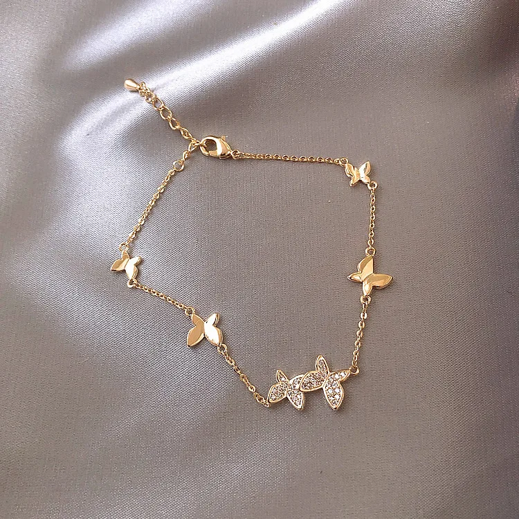 2020 корейский новый дизайн, модные ювелирные изделия, цепочка с инкрустированным цирконием, элегантный женский браслет с нежными бабочками