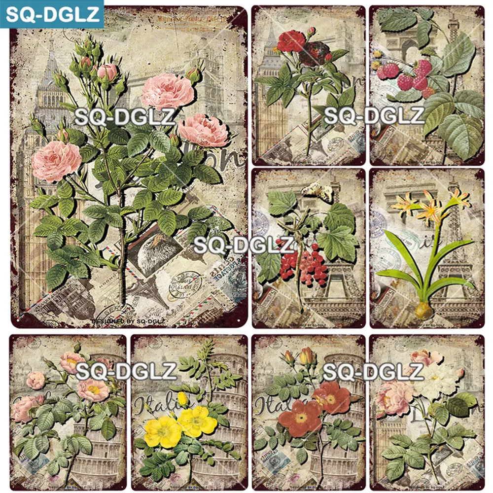 SQ-DGLZ садовое растение металлический знак винтажная табличка тарелок декор для пивной бар внешняя стена Декор наклейки в ретро стиле с цветочным принтом плакат изготовленный на заказ