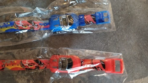 заказ шел почти 2 месяца в Москву. Часики симпатичные, аккуратные, колеса у машинки крутятся. Думаю, сын 3 года будет в восторге. Как писали выше, запах действительно есть, буду ограничивать время ношения.