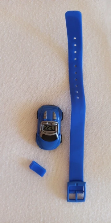 Очень долго шло. Не успела получить к нужному событию, заказала больше чем за месяц. Товар как на фото, показывает время/дату (автоматически переключается между ними каждые несколько секунд). Машинка с ремешка снимается.