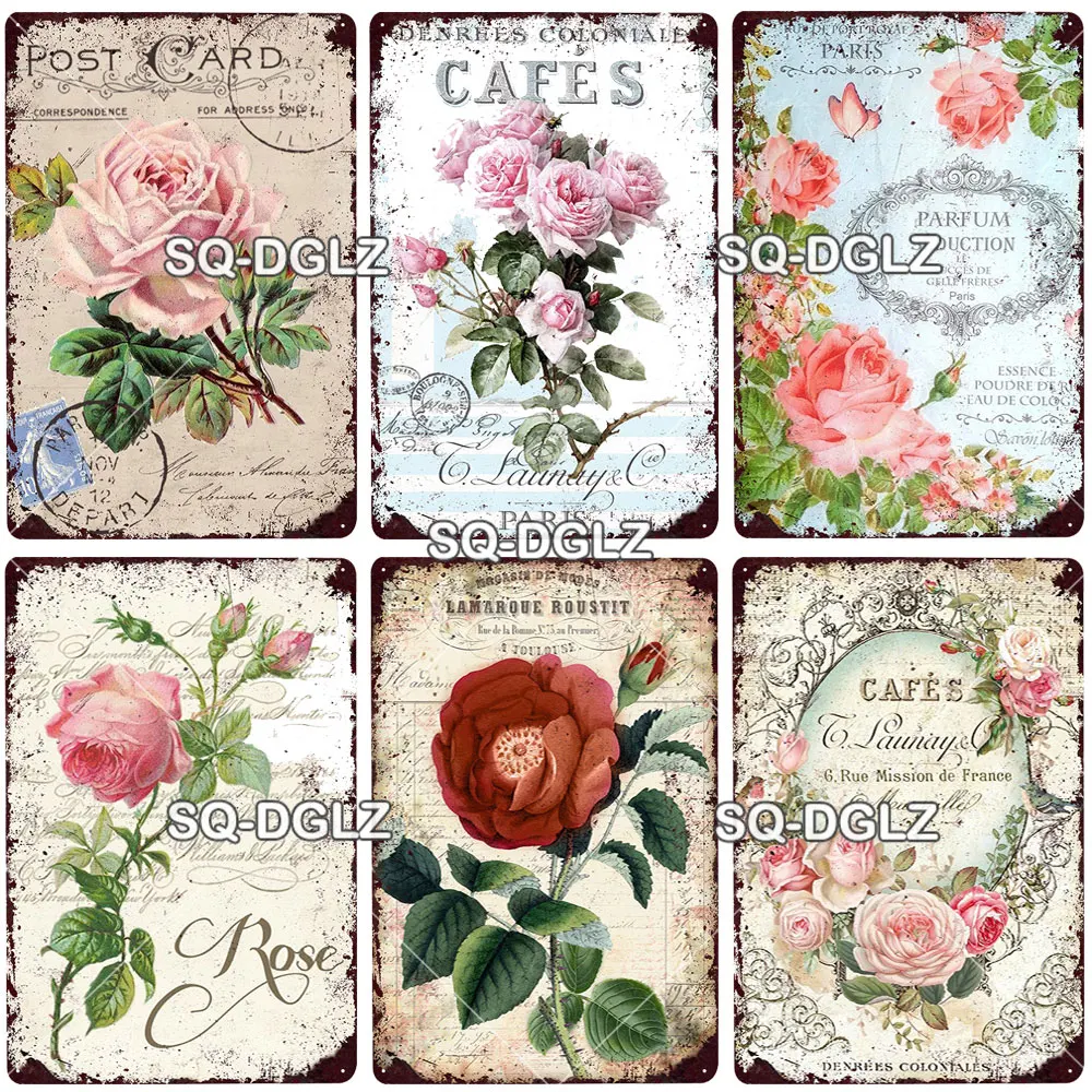 Металлическая Вывеска Роза для кафе, SQ-DGLZ, винтажная металлическ...