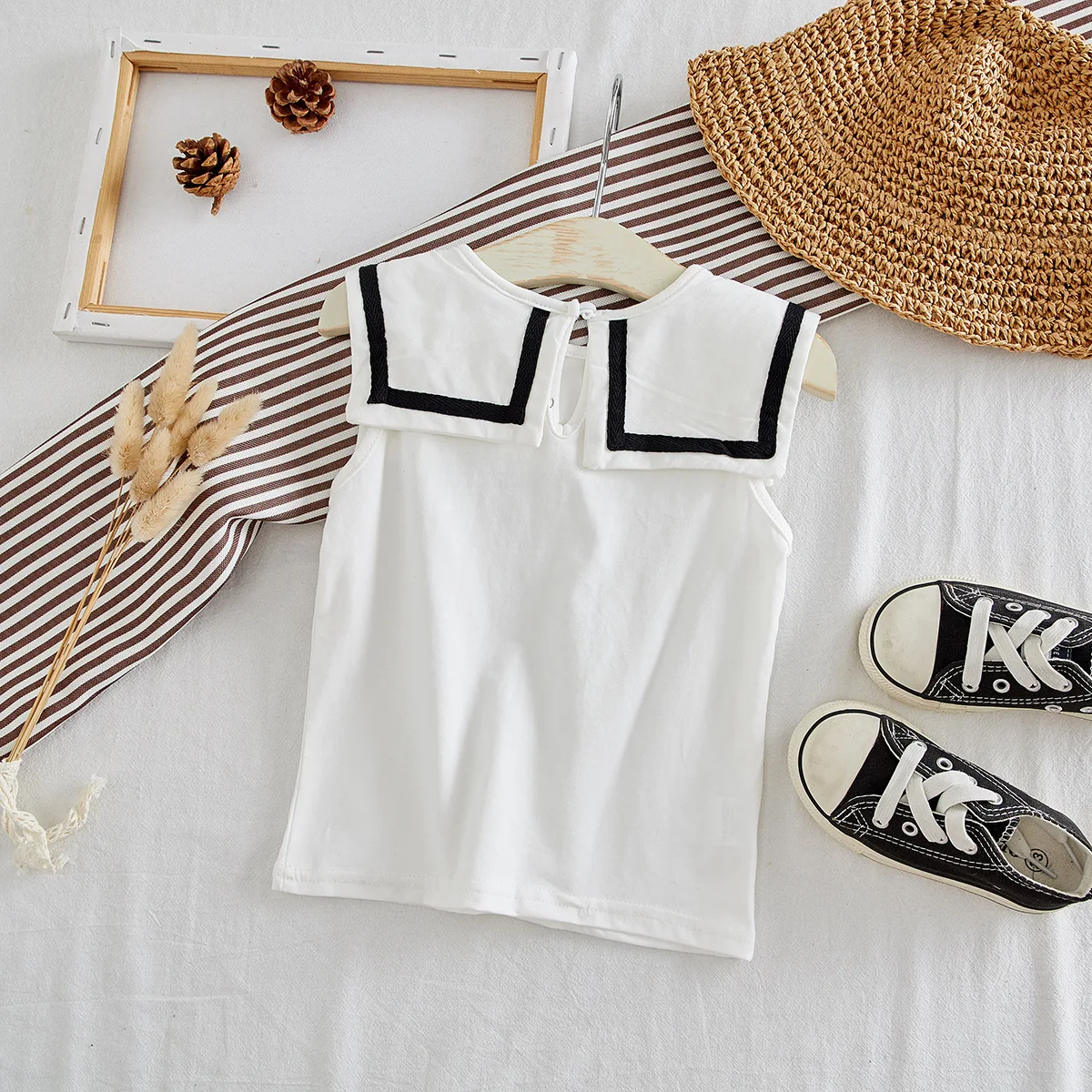 Комплект летней одежды для девочек, топ с отворотом и бусинами + се...