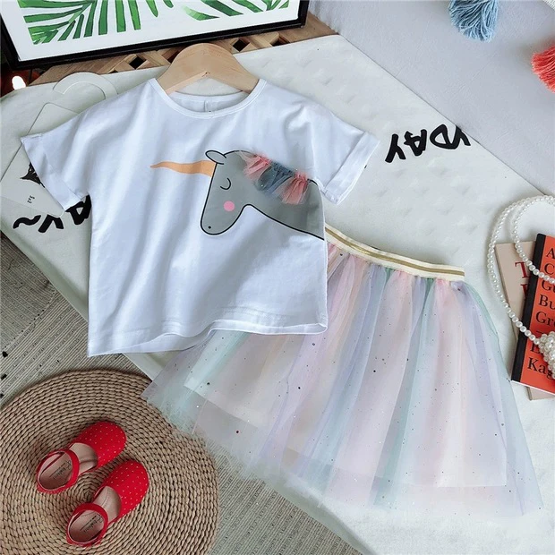 Детская одежда, 2021, летняя одежда для девочек, футболка + юбка-па...