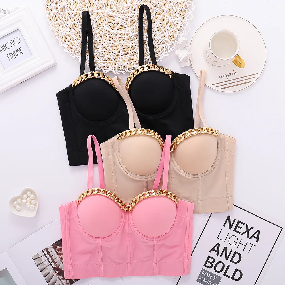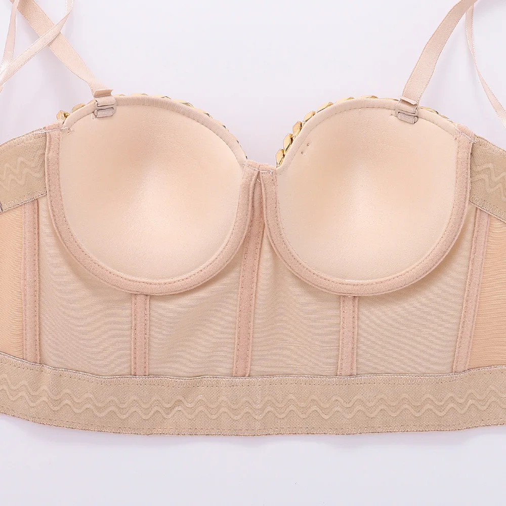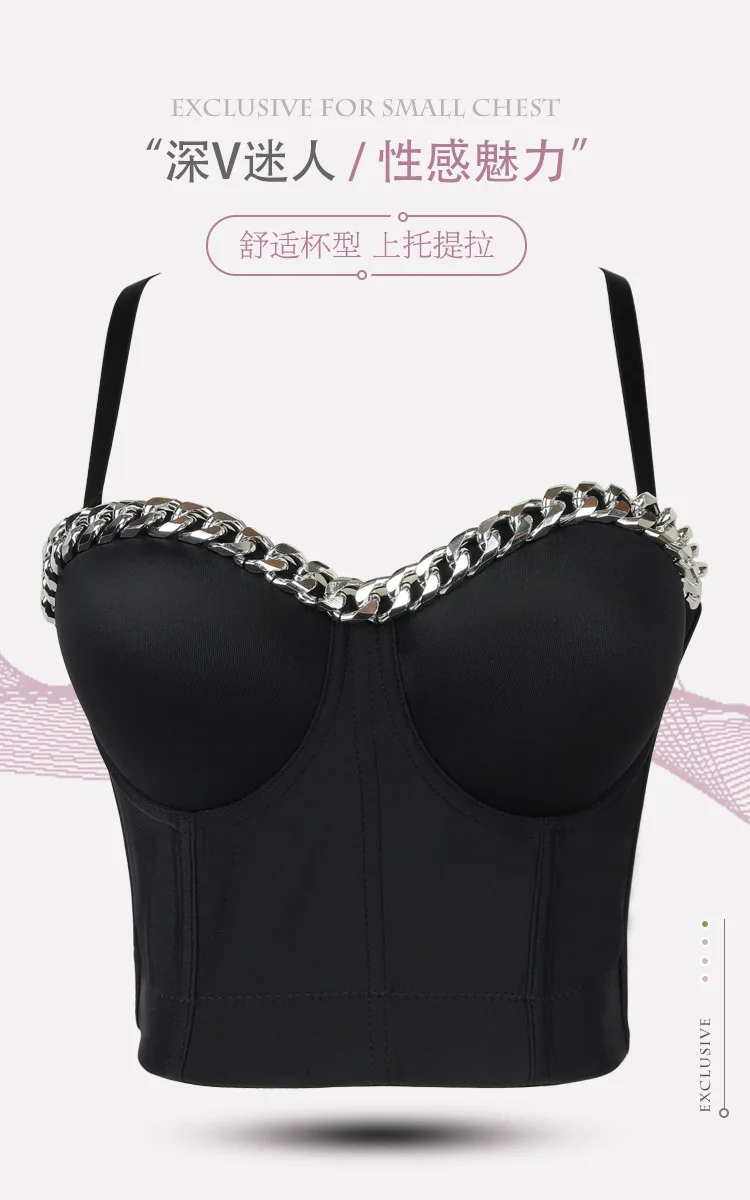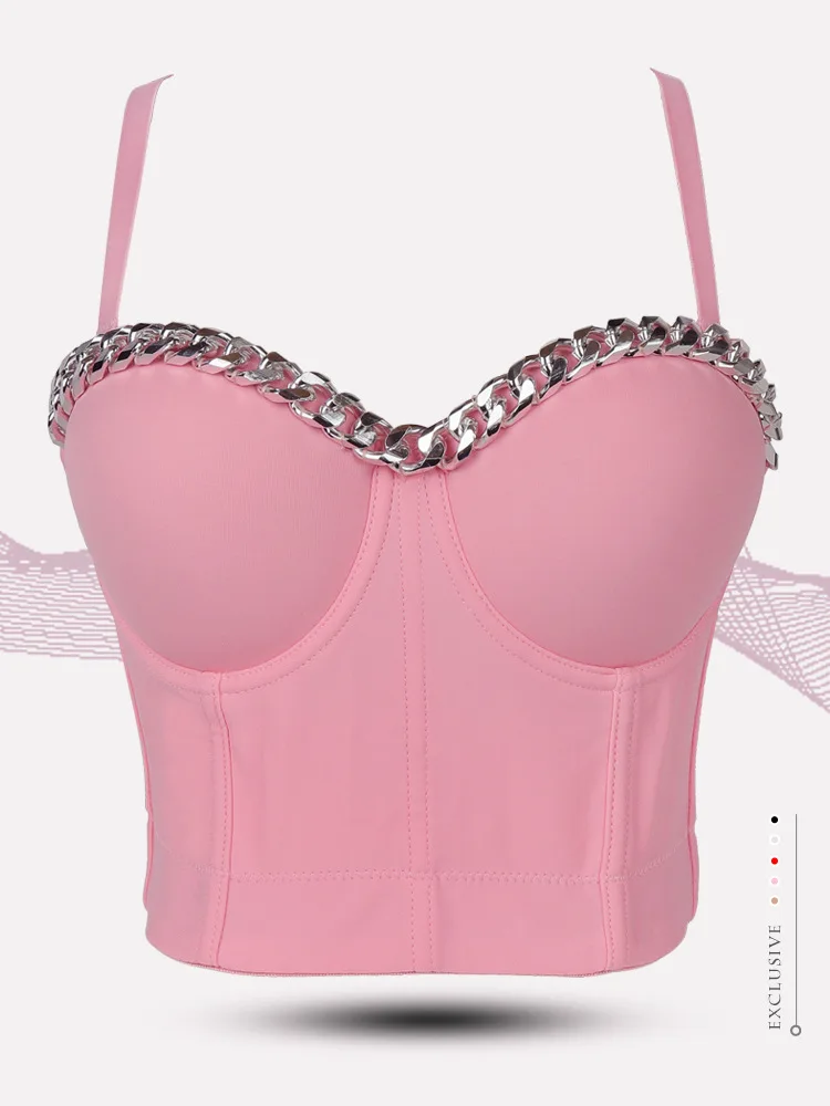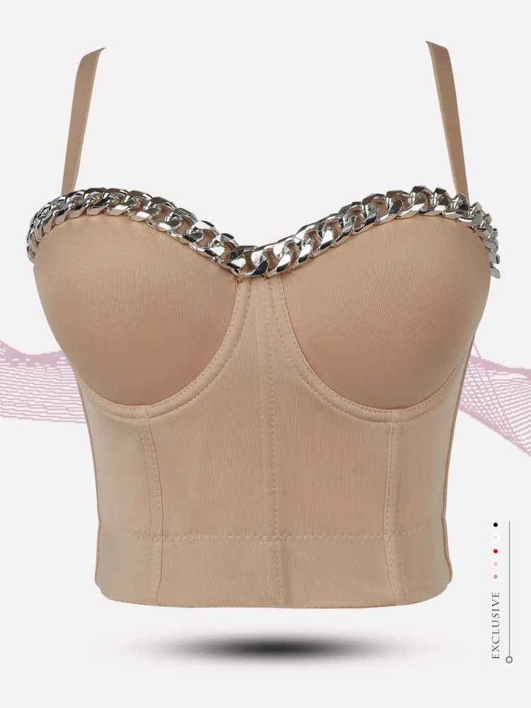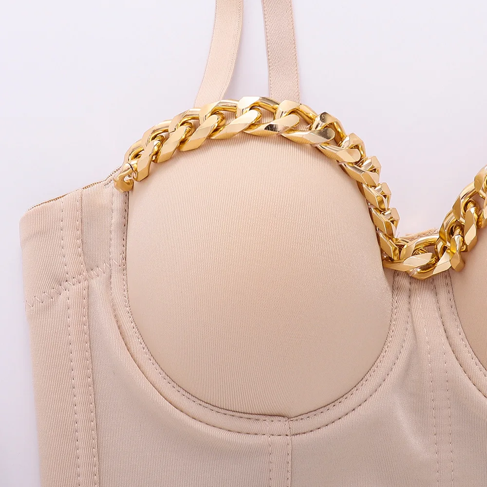 Новый дизайн 2020 года, бальный костюм с металлической цепочкой, сценический, клубный, бюстье пуш-ап, Бралетт короткий топ корсет