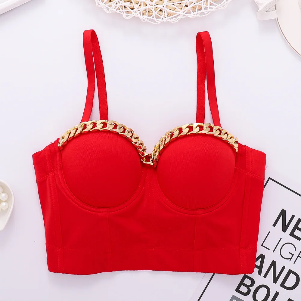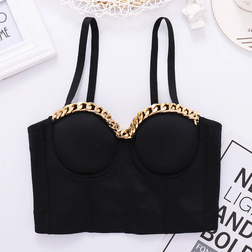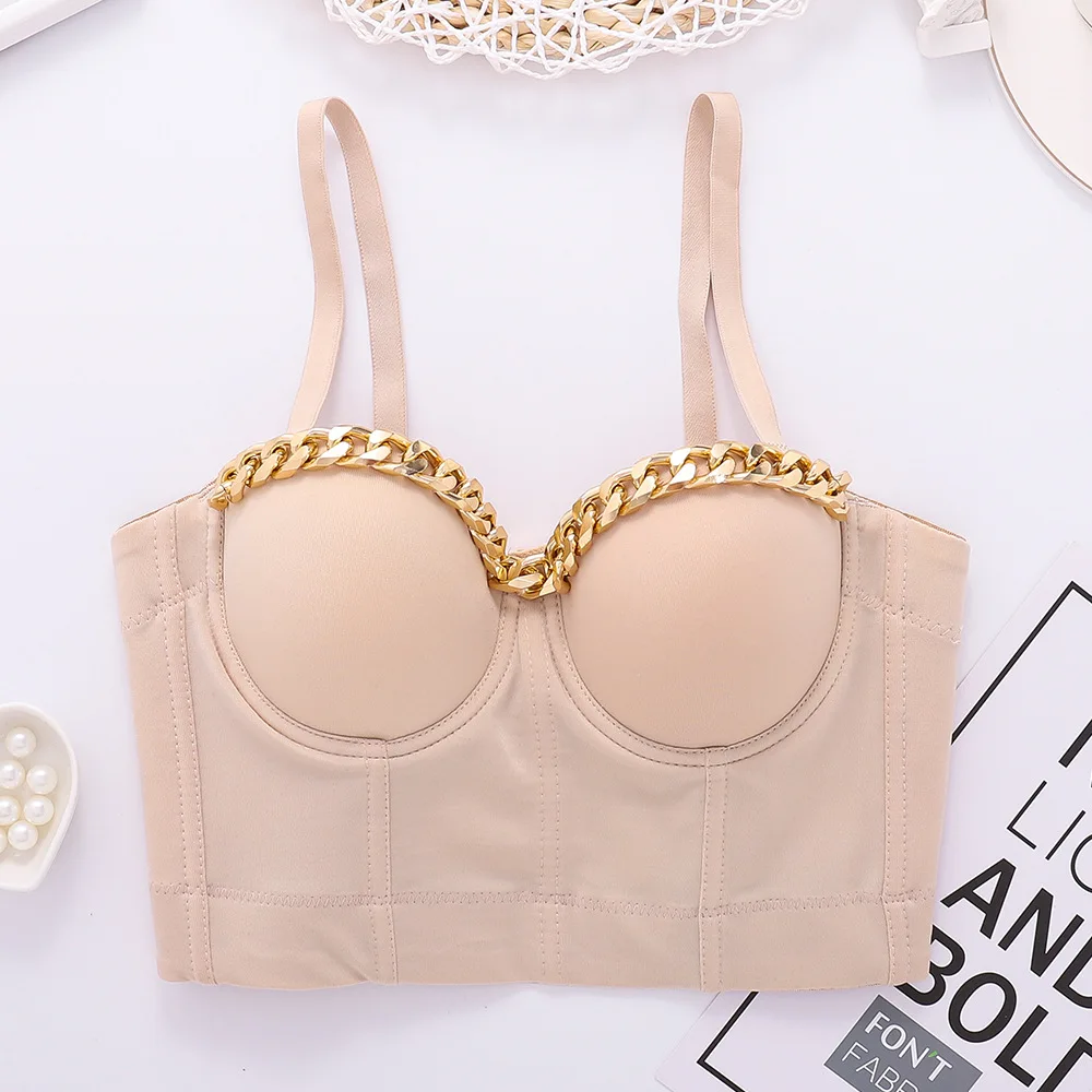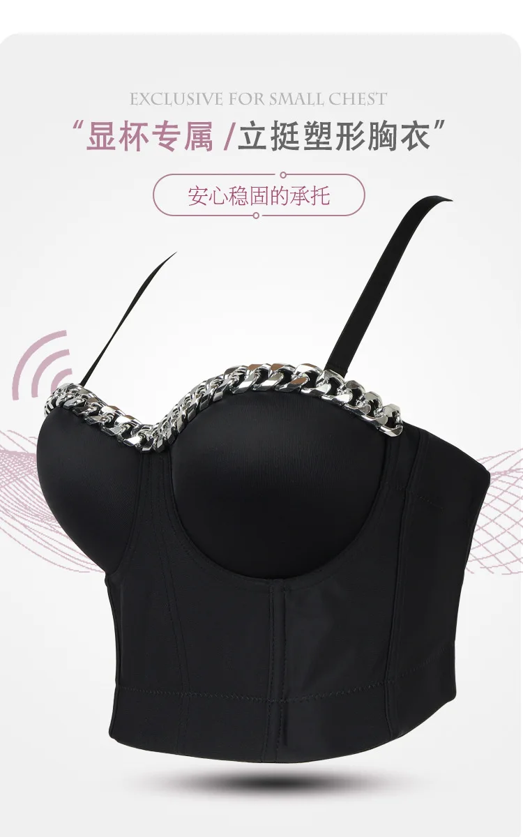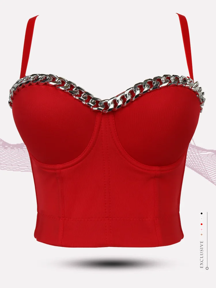 Новый дизайн 2020 года, бальный костюм с металлической цепочкой, сценический, клубный, бюстье пуш-ап, Бралетт короткий топ корсет