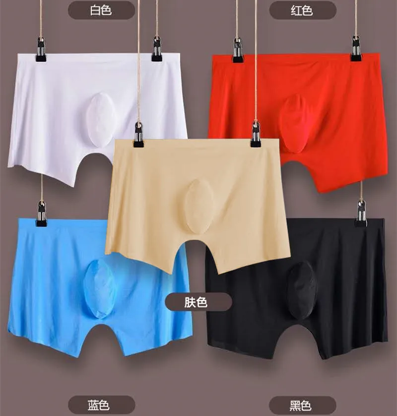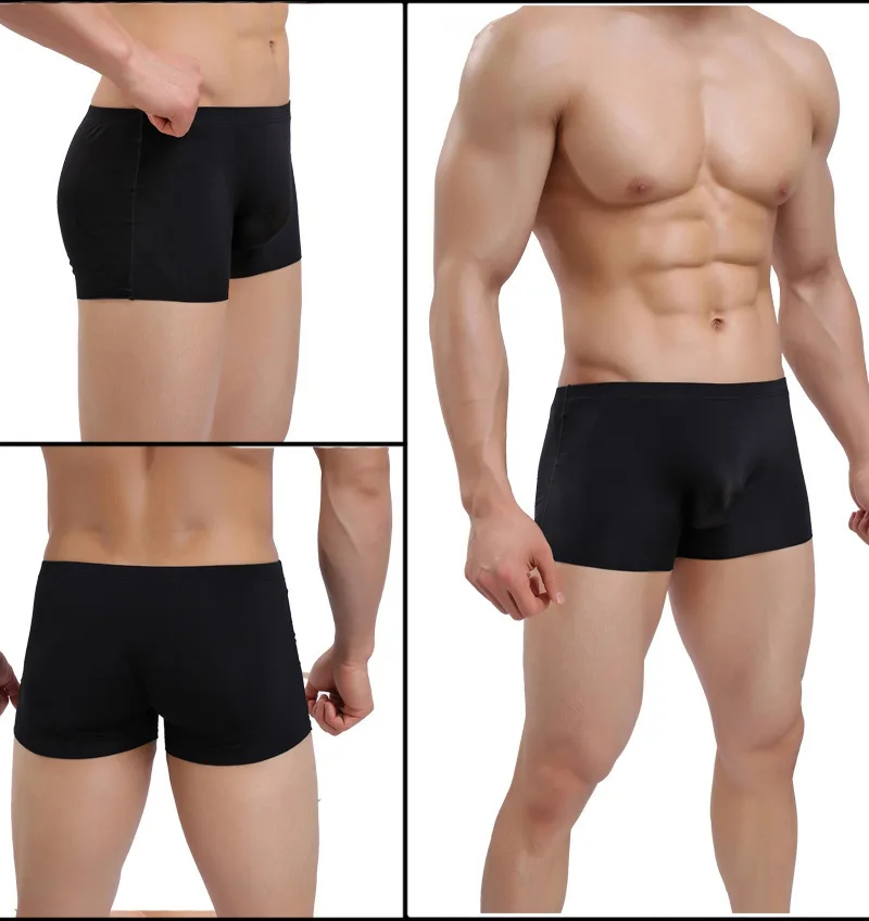 Оптовая продажа, мужские однотонные трусы-боксеры, бесшовные трусы-боксеры из прозрачного ледяного шелка с низкой посадкой, мужское нижнее белье европейского размера