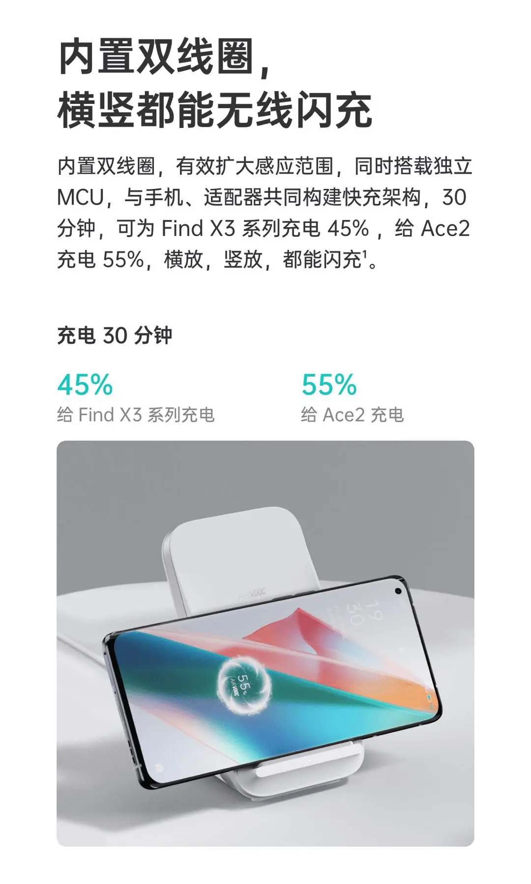 Беспроводное зарядное устройство OPPO AirVOOC 45 Вт 10 в 6,5 а для OPPO Find X3 Pro Ace2 Enco X W51Universal Qi Standard EPPBPP