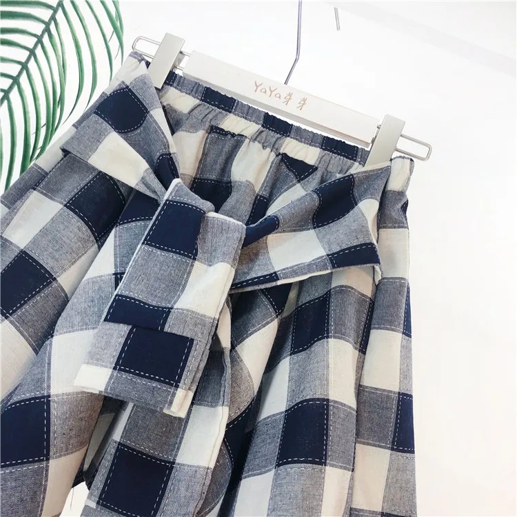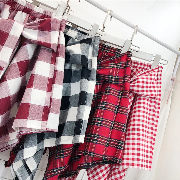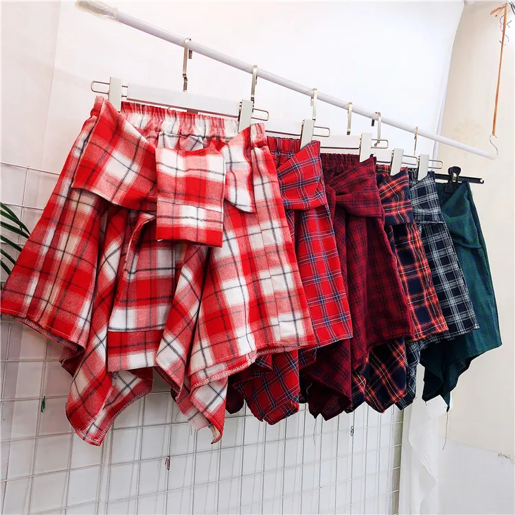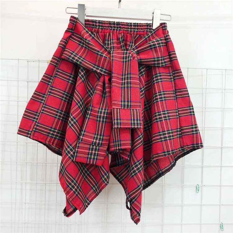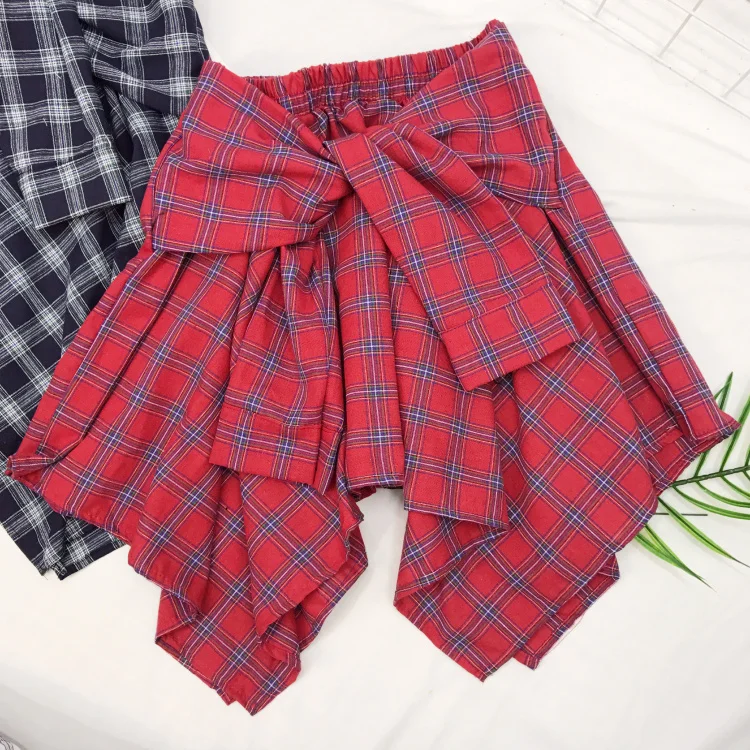 Женские клетчатые юбки с принтом, летние Асимметричные рубашки, юбки с эластичным поясом, мини-юбка в студенческом стиле, Женская юбка DK6054