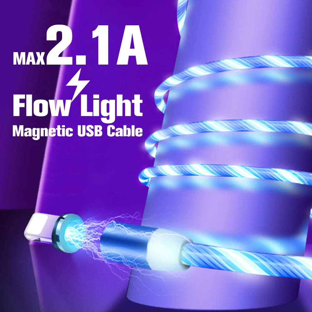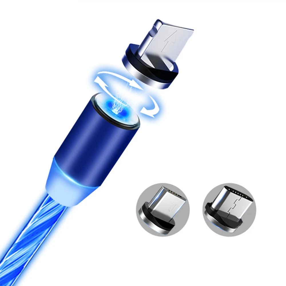 Магнитный струящийся светильник, зарядный кабель для телефона, Micro USB Type C, шнур для зарядки телефона, Micro USB, зарядное устройство, магнитный разъем, светодиодный провод