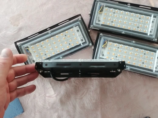 Все шесть прожекторов прибыли в целости и сохранности. Я ненадолго проверил их, чтобы избежать проблем с перегревом, и все они горят. Эти прожекторы не самые дешевые, вы можете купить такие же товары на AliExpress, но их небольшая цена увеличивается из-за: -Лучшее затягивание винта передней крышки задней пластины, которая улучшает герметичность и водонепроницаемость -Защитное соединение заземления, которое отсутствует в более дешевых единицах -Конденсатор и некоторые другие Пассивные компоненты, которые отсутствуют в более дешевых единицах. Кажется, что все прожекторы этого типа используют общие компоненты, т. Е. Алюминиевый задний лист 0,5 мм, алюминиевый штампованный кронштейн, прозрачная пластиковая крышка/рассеиватель света и обычная печатная плата. Чем отличаются детали, и они могут быть важны в зависимости от вашего планового использования. В целом это хороший продукт с лучшим соотношением цены и производительности.