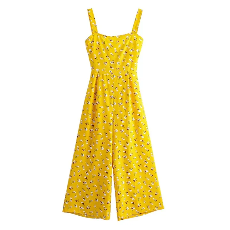 Женский комбинезон без рукавов, праздничный комбинезон на бретелях-спагетти, с цветочным принтом, широкими штанинами, с квадратным вырезом и открытой спиной, 2020