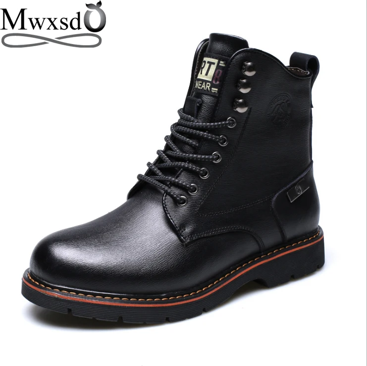 Mwxsd повседневные мужские кожаные туфли на плоской подошве, модные мужские теплые ботинки на шнуровке