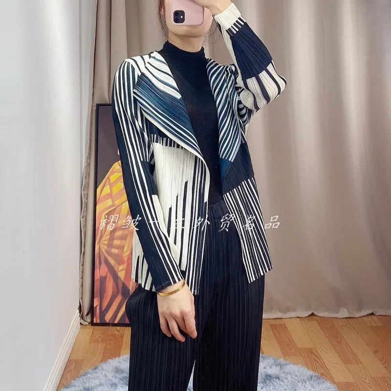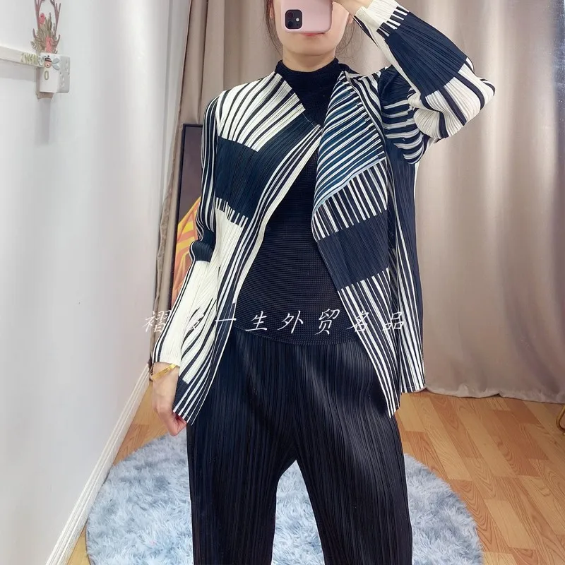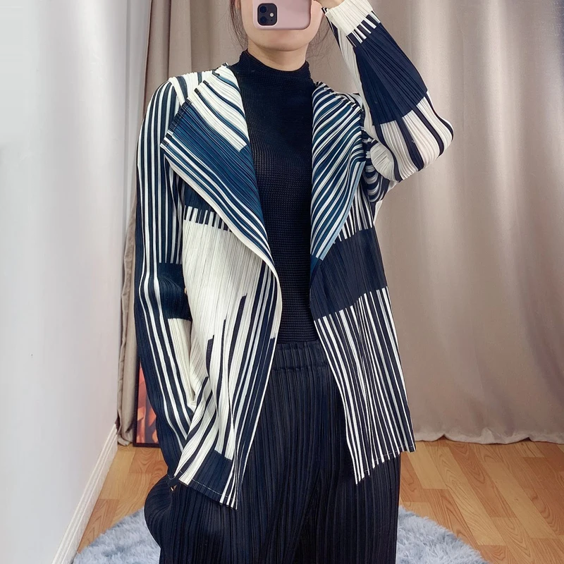 Changpleat 2020 весна-лето новый полосатый тонкий кардиган пальто miяка плиссированный модный большой размер одиночный рукав женские куртки пальто