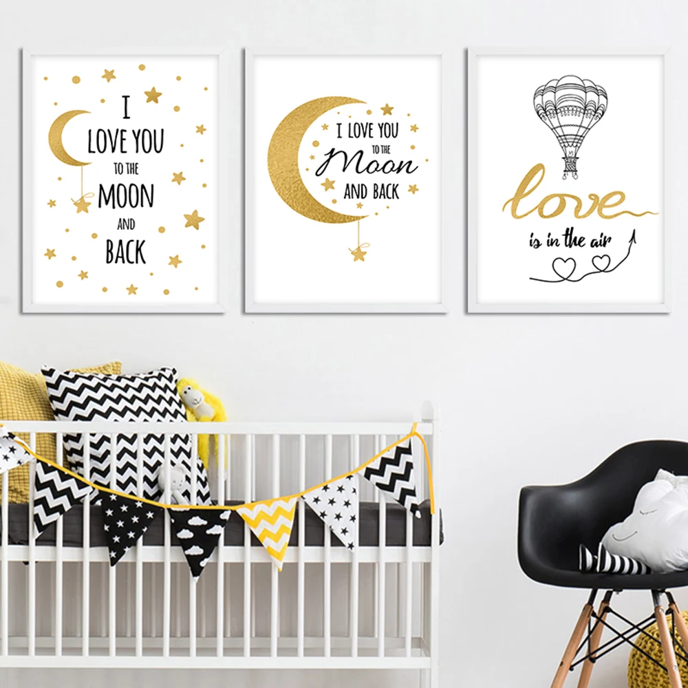 Я люблю тебя на Луну и обратно, детская настенная художественная картина с цитатами, холст, плакаты, печать, Скандинавское изображение, украшение для детской комнаты
