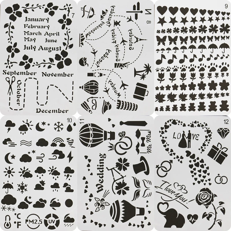 6 шт многоразовые трафареты пуля журнал шаблон картины DIY настенная живопись скрапбук раскраска тиснение альбом декоративный шаблон