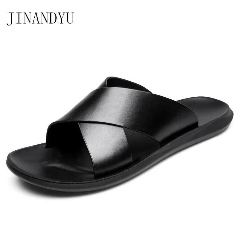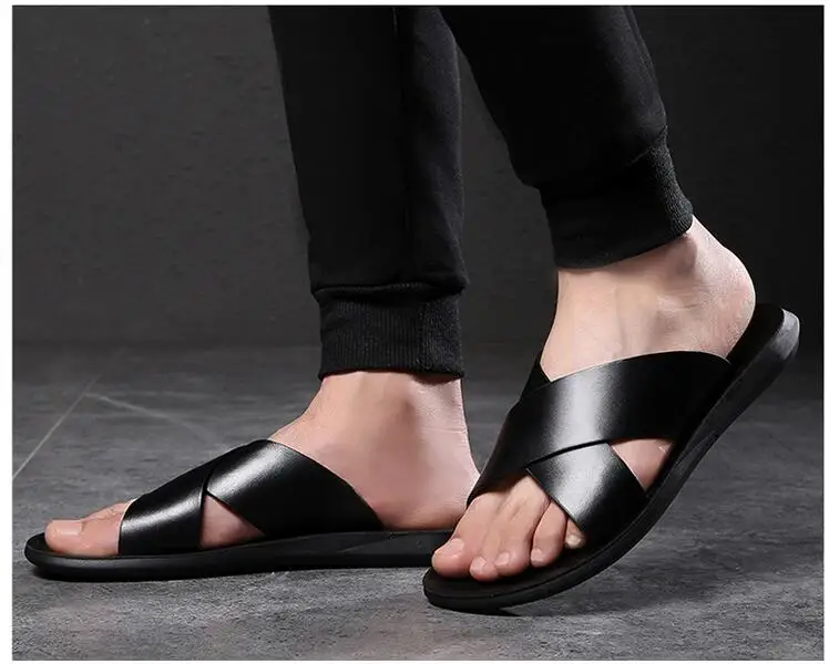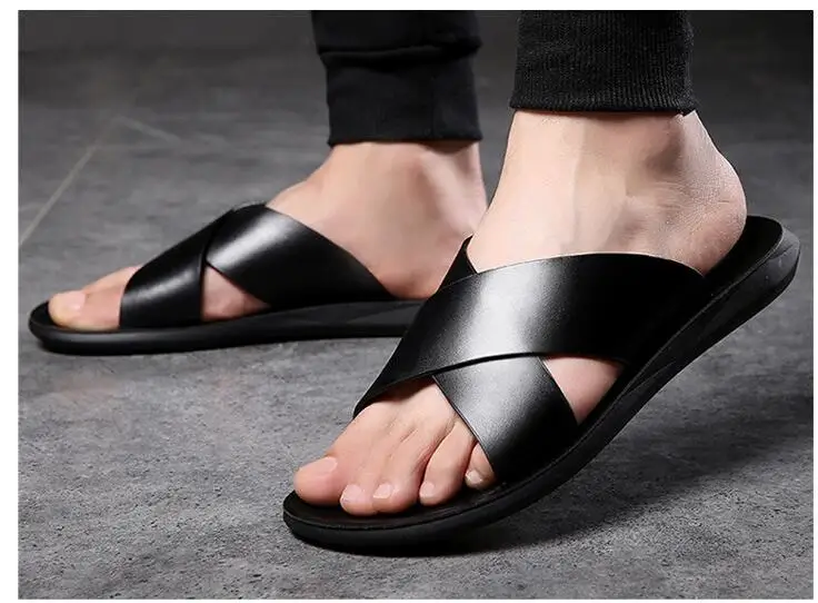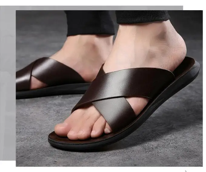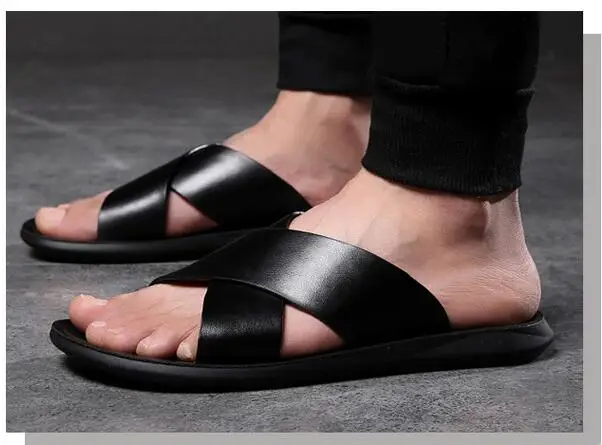 Мужские кожаные тапочки 2021 Мужская обувь Шлепанцы из натуральной ...