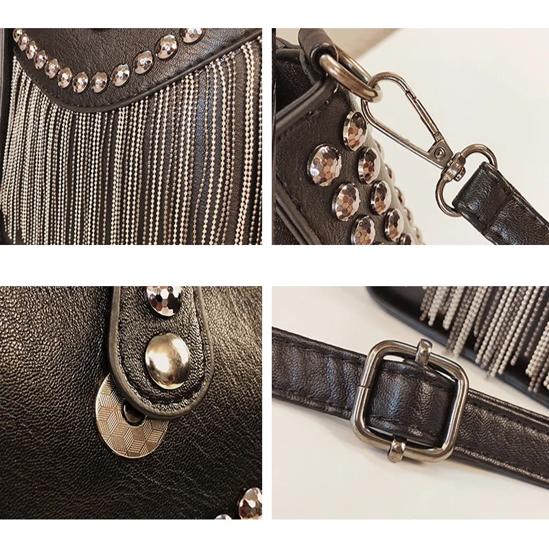 Сумка женская через плечо с кисточками и заклепками, маленькая