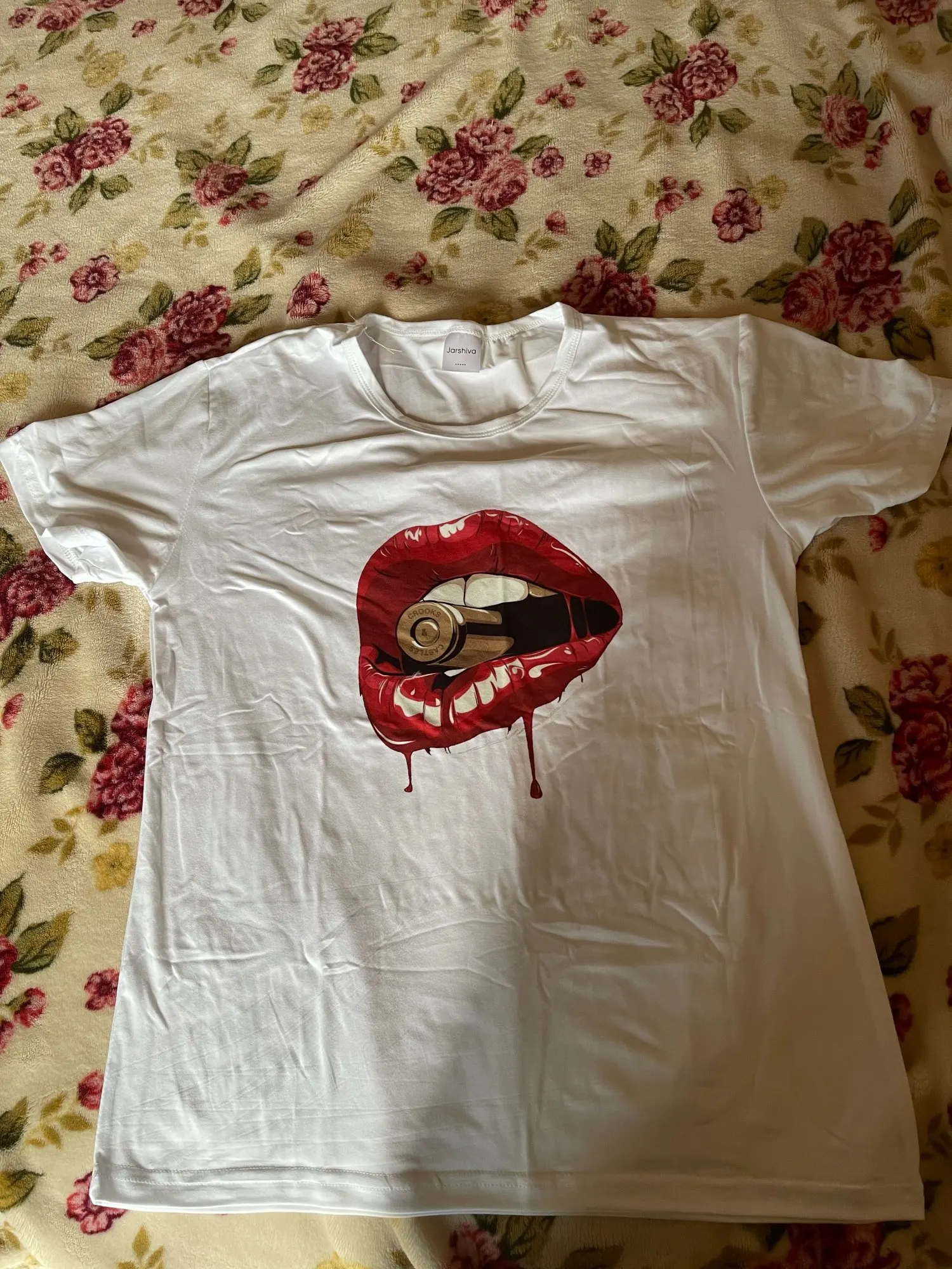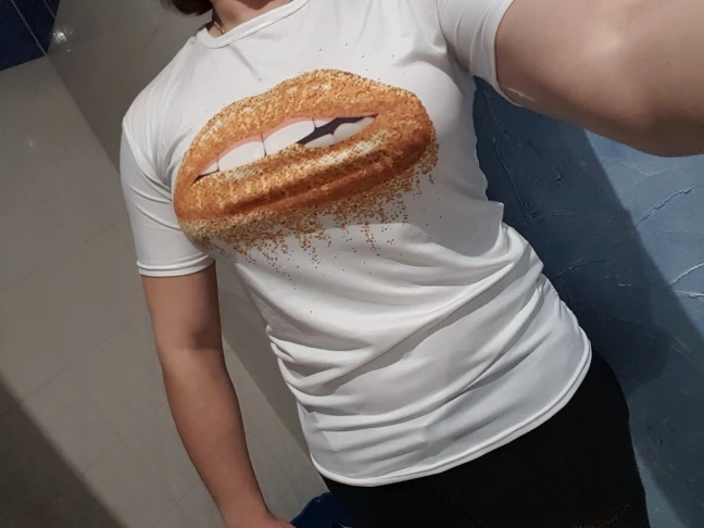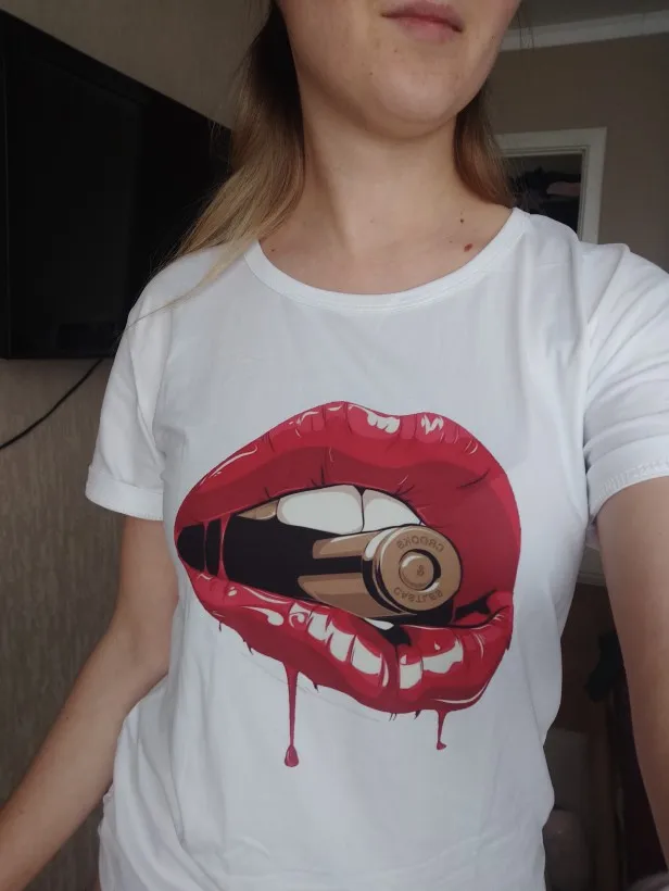 Если честно, то на фото выглядит лучше, чем есть на самом деле. На белой футболке зубы на рисунке выглядят желтыми. Прокуренные зубы цвета осенних листьев - немного не тот эффект, которого я ожидала, заказывая футболку. Не знаю буду ли носить,но сам рисунок нормального качества. А вот с оттенками подкачало...