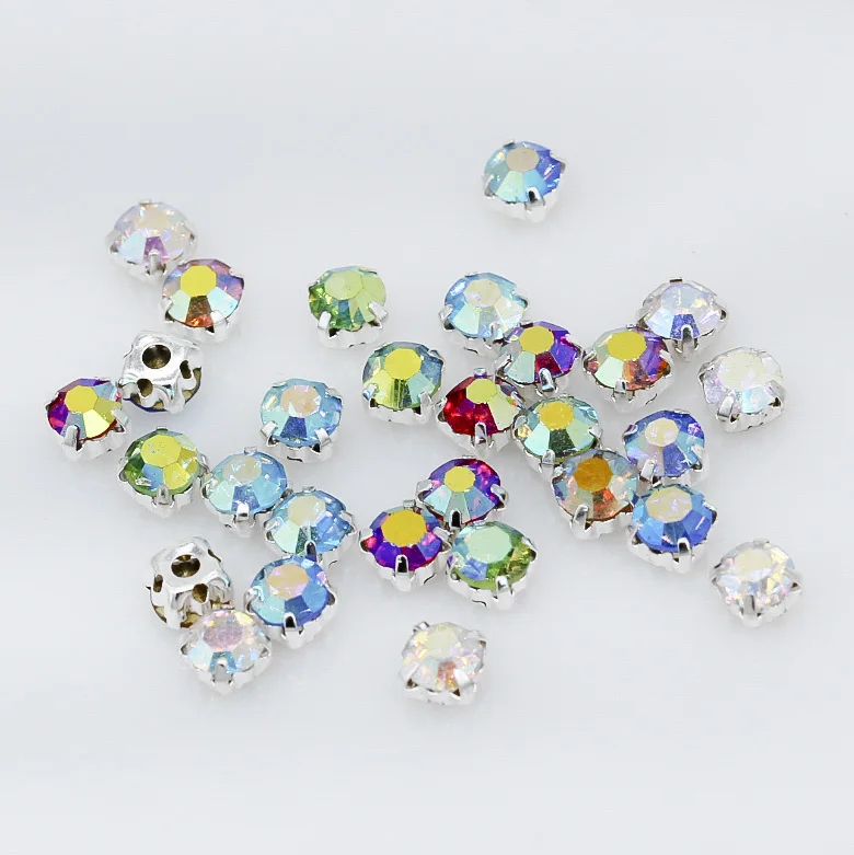 100p 3 мм 4 мм 5 мм 6 мм цвет AB шьют круглые хрустальные стразы драгоценности серебряная чашка коготь montees шитье свадебное платье украшение