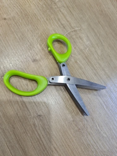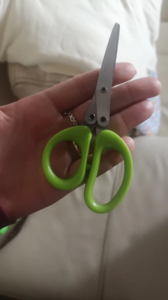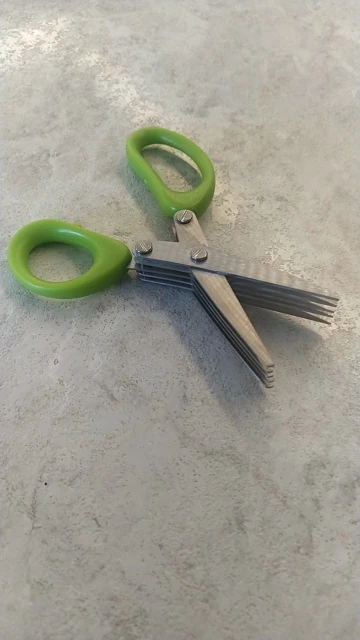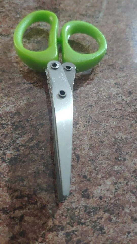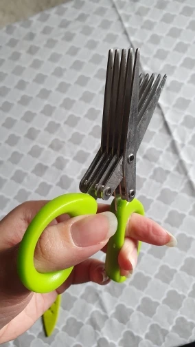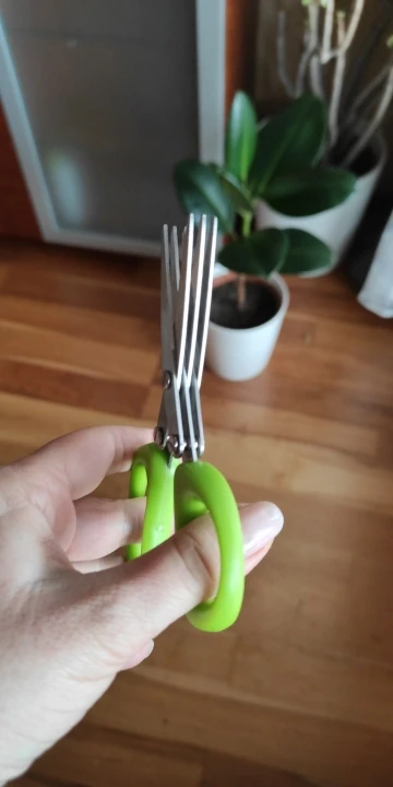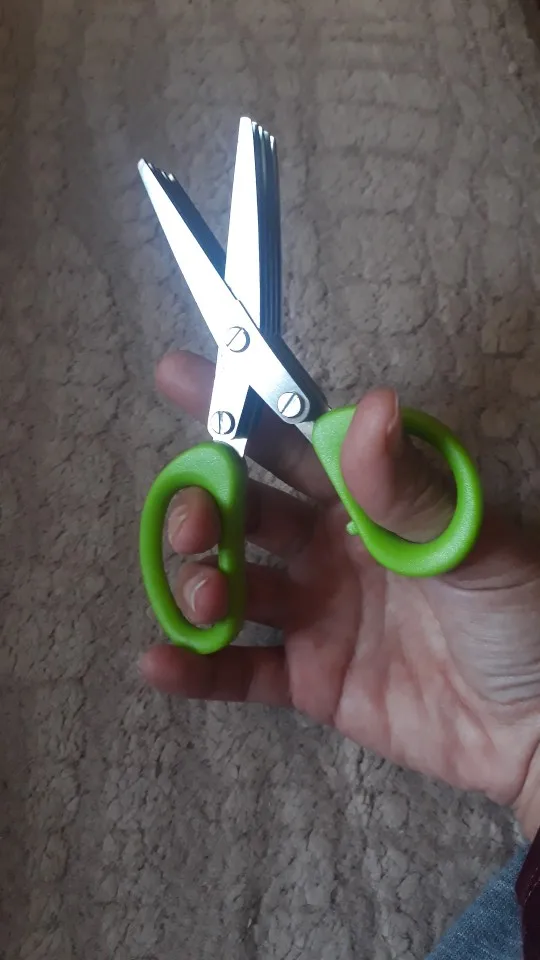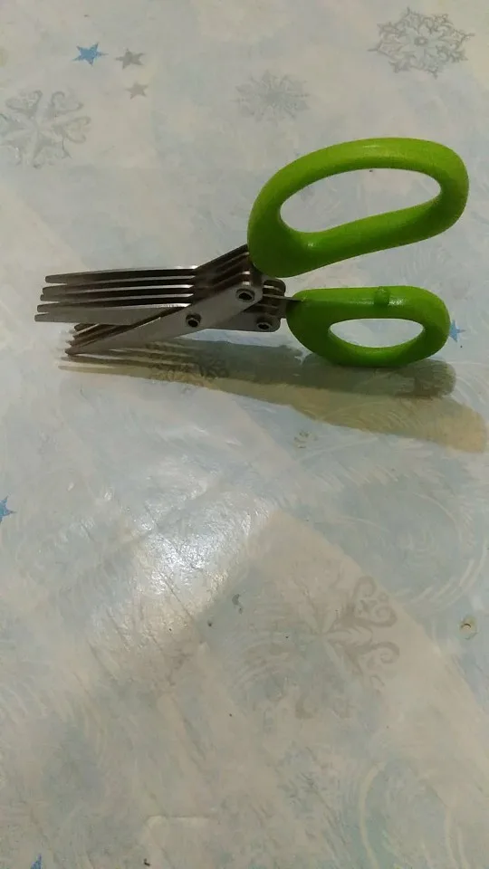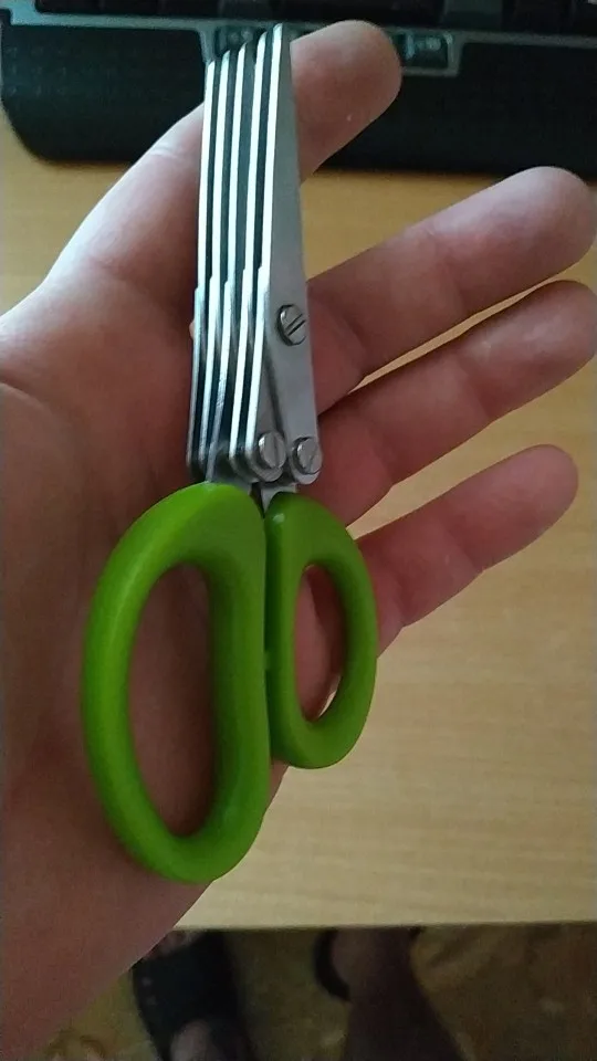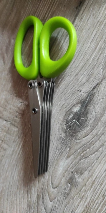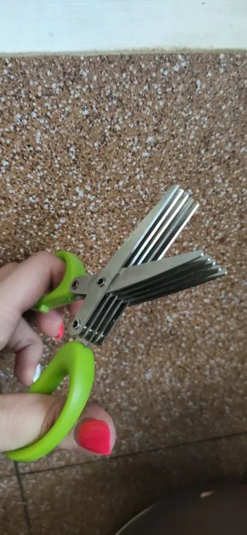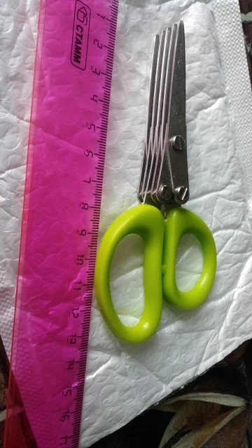 По началу товар совсем не понравился, так как стала резать зелень, то ножницы попросту начали её мять, а не нарезать. Но сдесь своя хитрость, зелень после мытья надо посушить и тогда всё ок. Да и будьте осторожны когда моете ножницы, лезвия наточены будь здрав, я поранила не хило палец. Так что товар рекомендую.