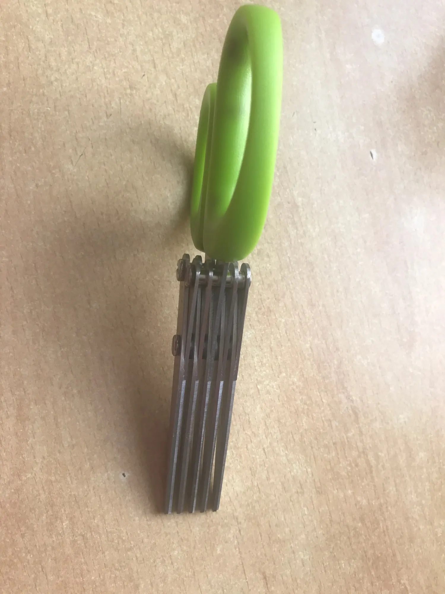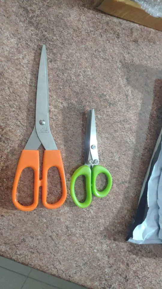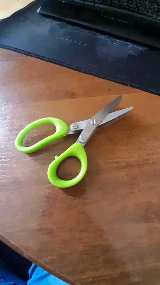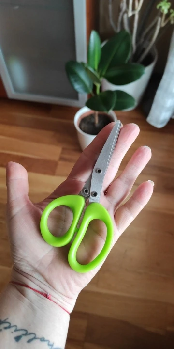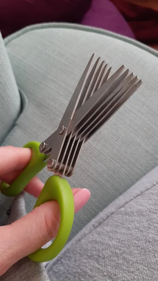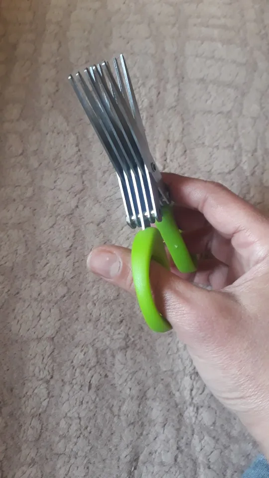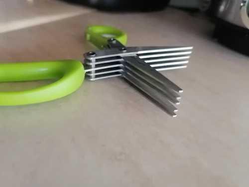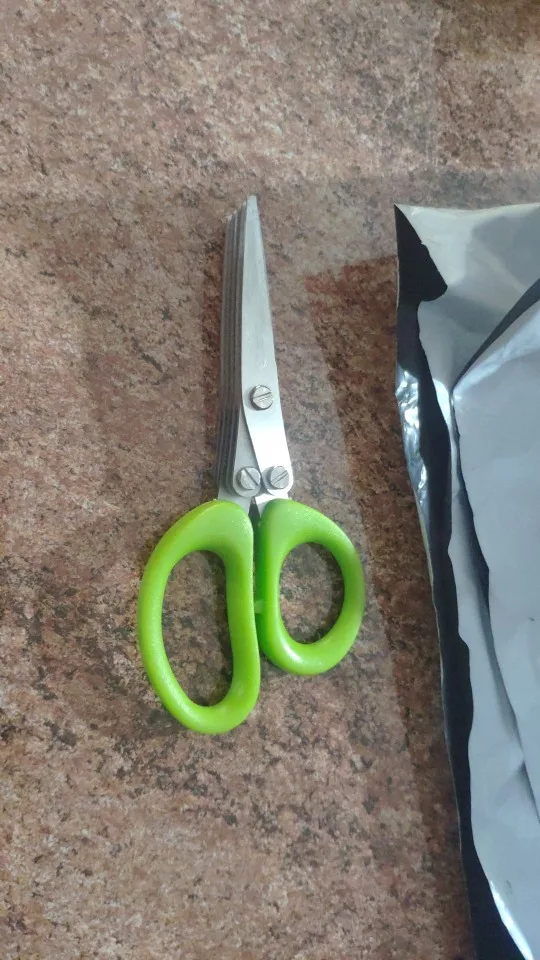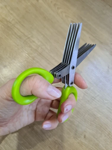 По началу товар совсем не понравился, так как стала резать зелень, то ножницы попросту начали её мять, а не нарезать. Но сдесь своя хитрость, зелень после мытья надо посушить и тогда всё ок. Да и будьте осторожны когда моете ножницы, лезвия наточены будь здрав, я поранила не хило палец. Так что товар рекомендую.