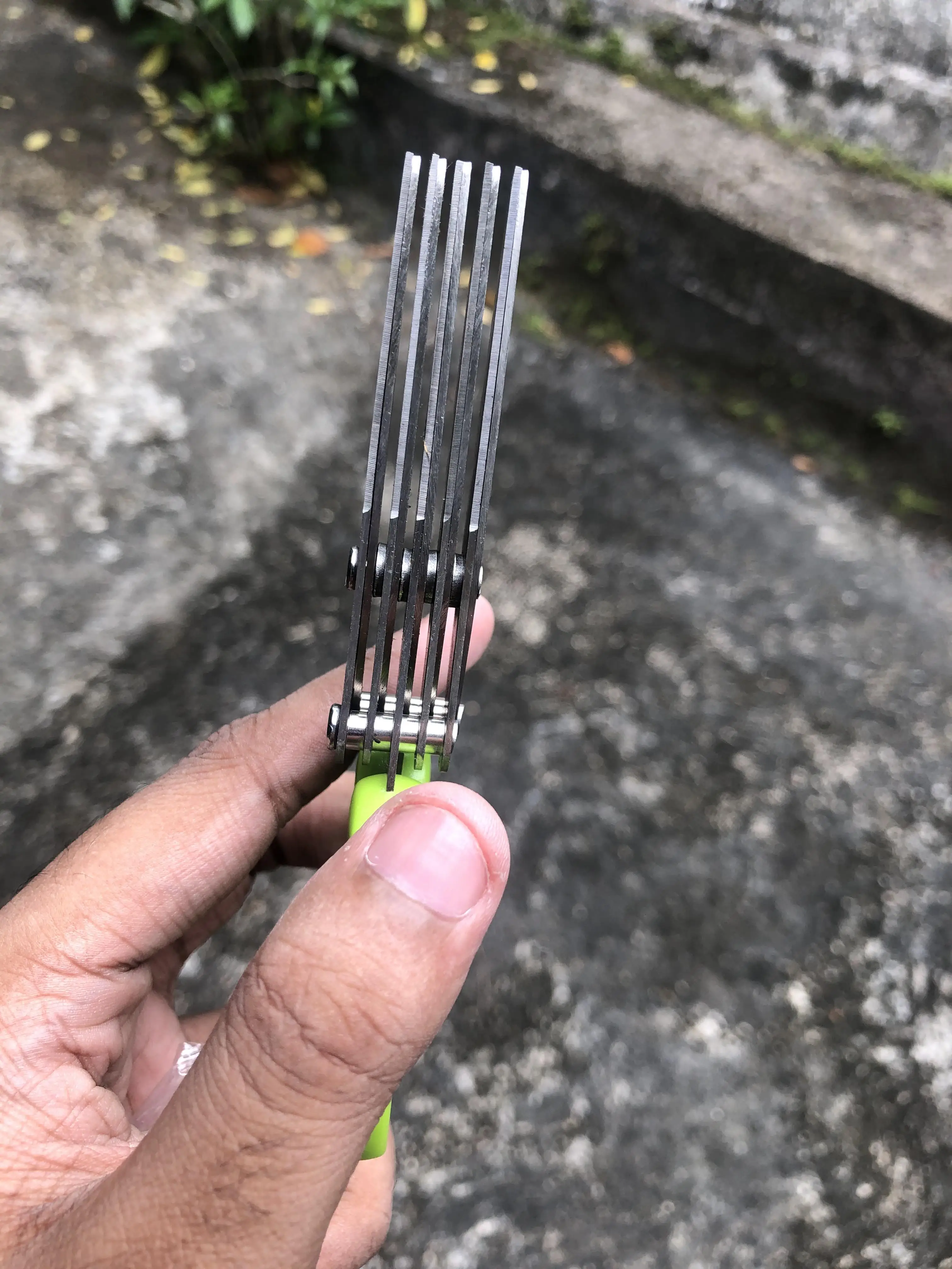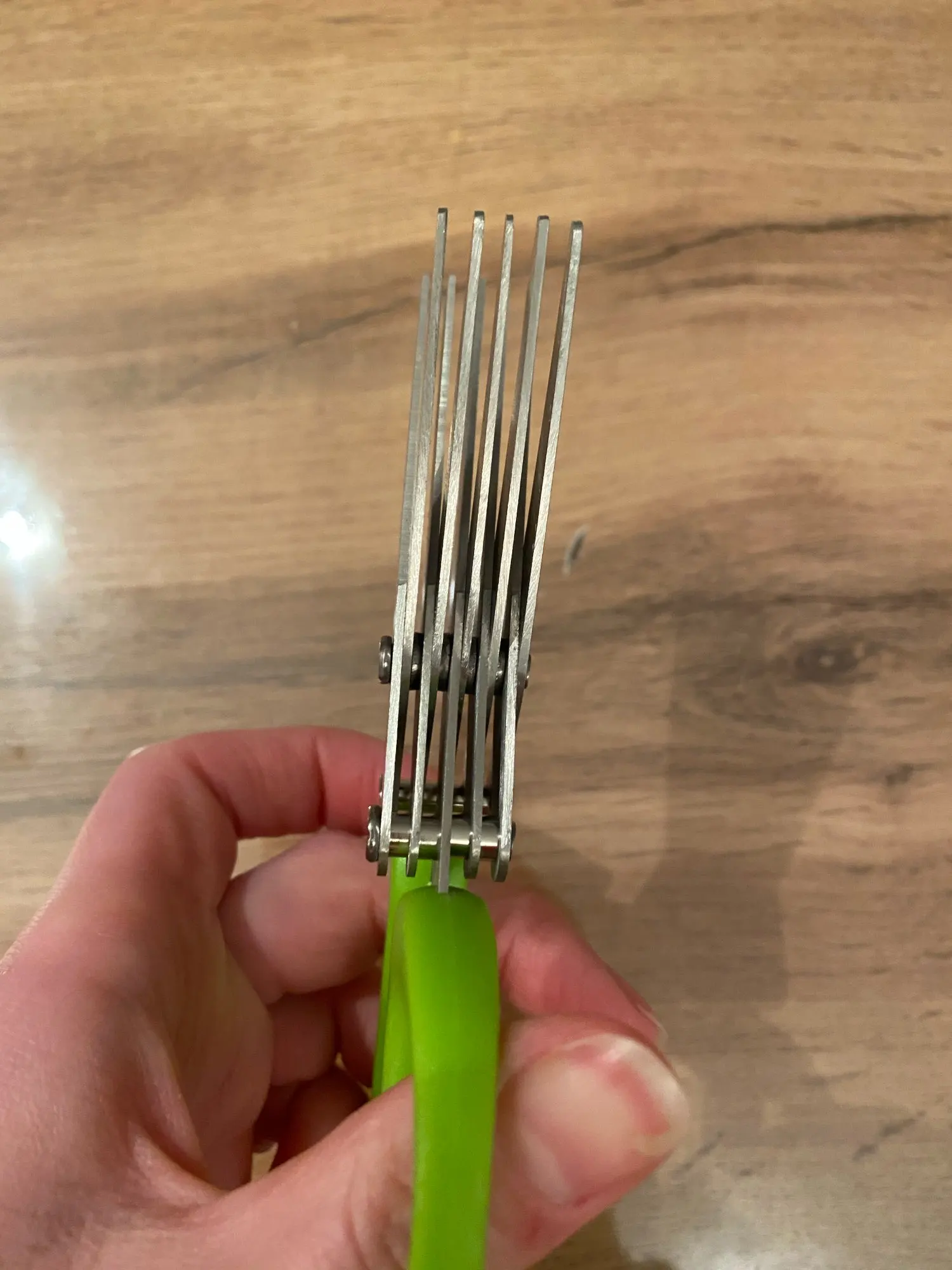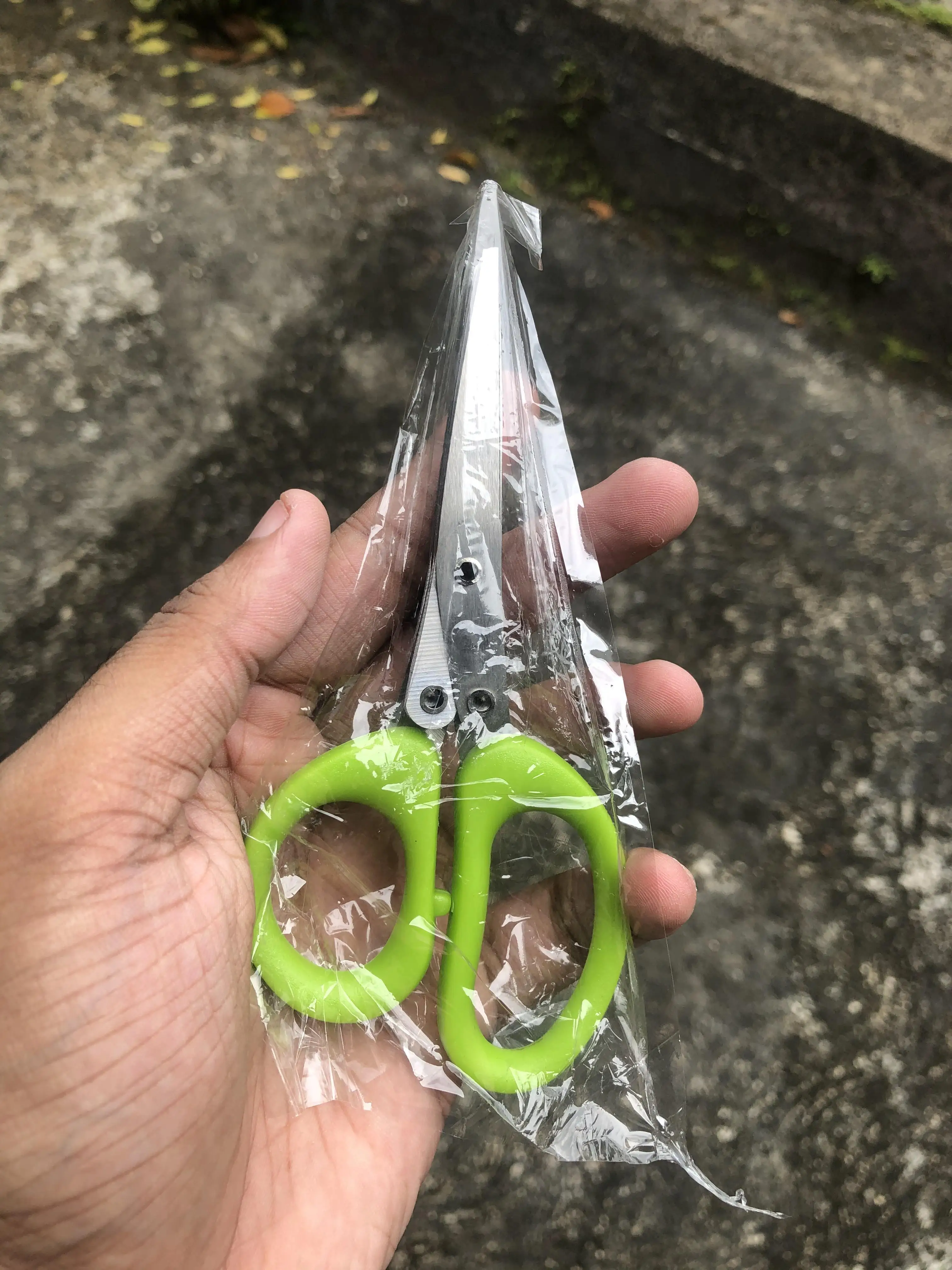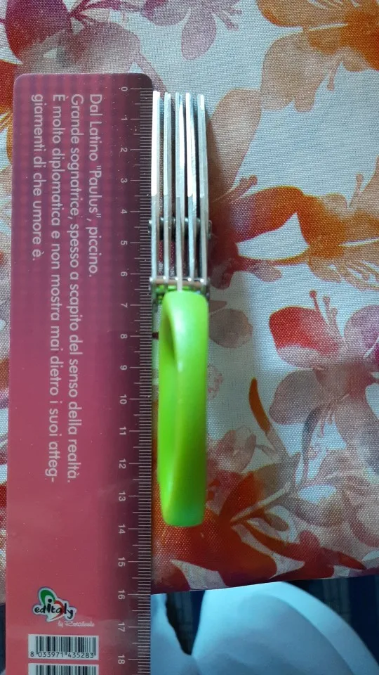По началу товар совсем не понравился, так как стала резать зелень, то ножницы попросту начали её мять, а не нарезать. Но сдесь своя хитрость, зелень после мытья надо посушить и тогда всё ок. Да и будьте осторожны когда моете ножницы, лезвия наточены будь здрав, я поранила не хило палец. Так что товар рекомендую.