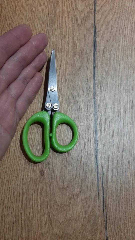 Ножницы маленькие (я сама упустила этот момент в описании) , большой пучок зелени не порезать. Режут очень мелко. И лучше сухую зелень, мокрая остаётся на ножницах- дольше чистить будете потом их, быстрее ножом порезать. В целом острые, режут хорошо, но маленькие объемы, по одной веточке. Товар пришёл за три недели. Спасибо!