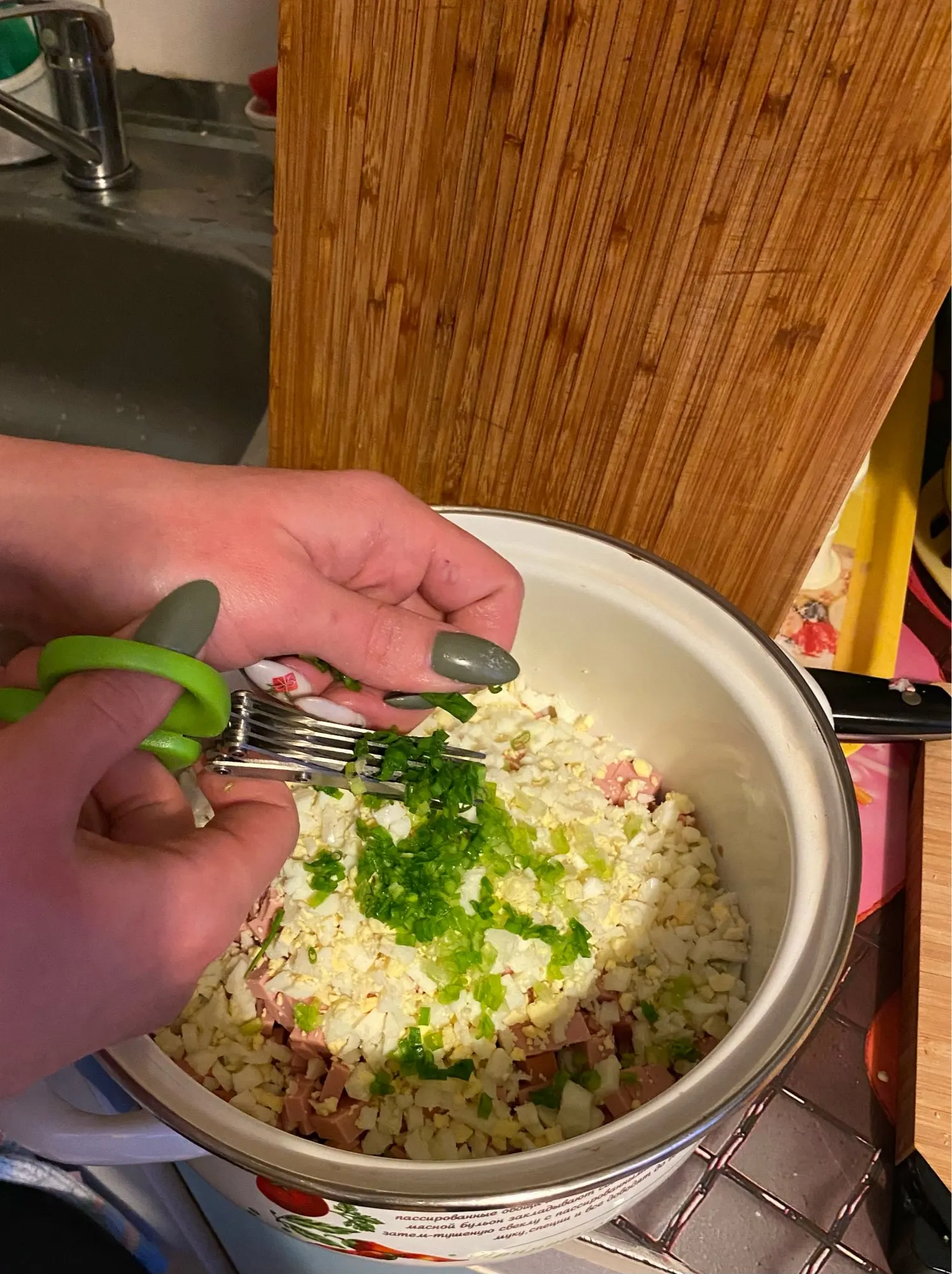 Все хорошо! Я думал, что он больше, но все еще подходящий размер для нарезки овощей, таких как Кориандр, весенний лук и так далее