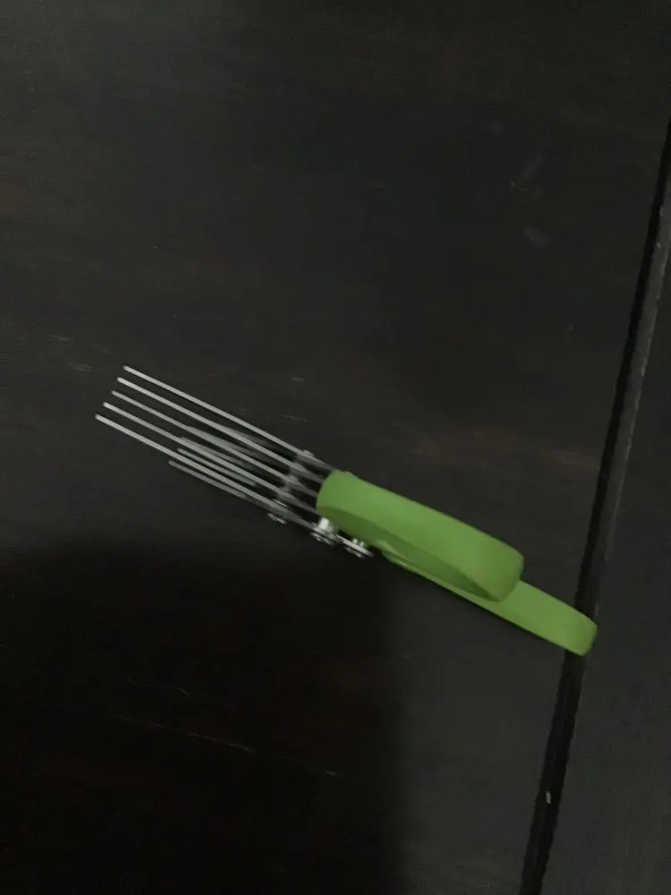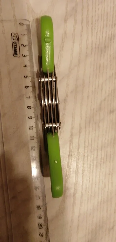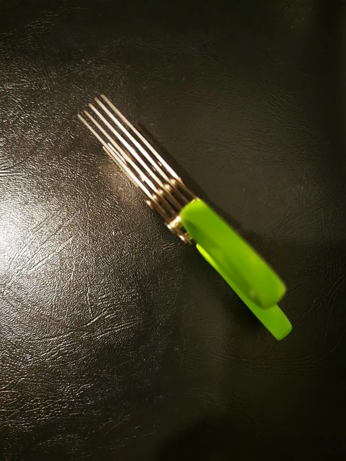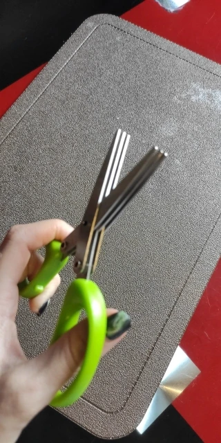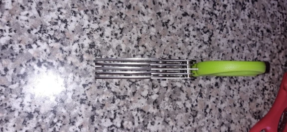 Зеленого лука в доме пока не нашлось, проверил только на бумаге - режет отлично. Расстояние между лезвиями небольшое, возможно, будет слишком мельчить