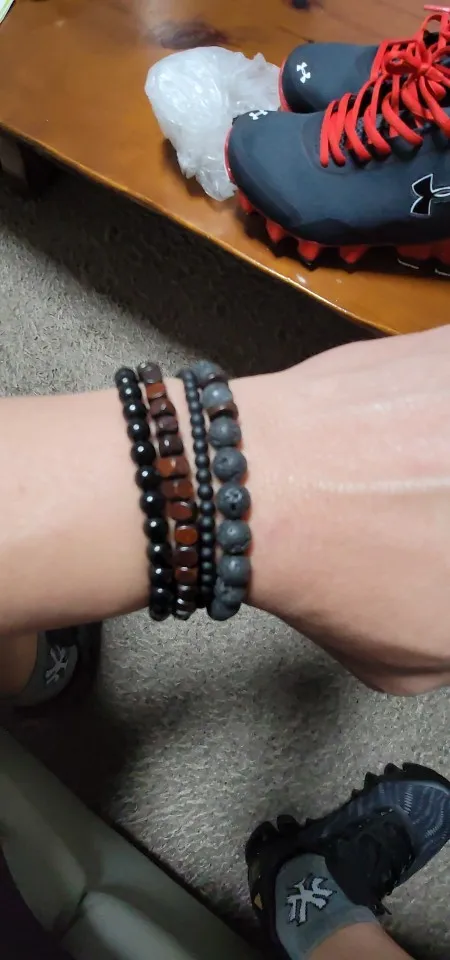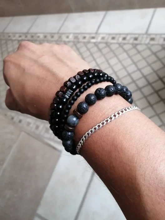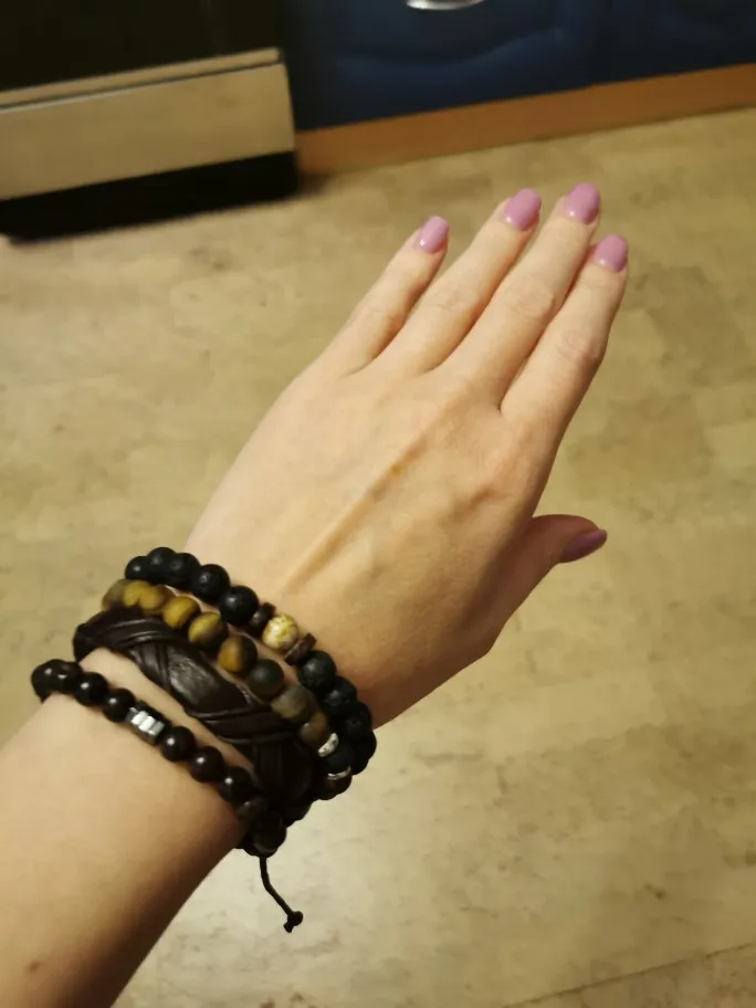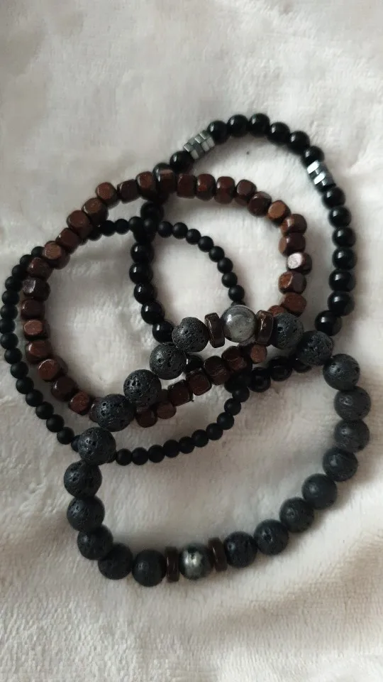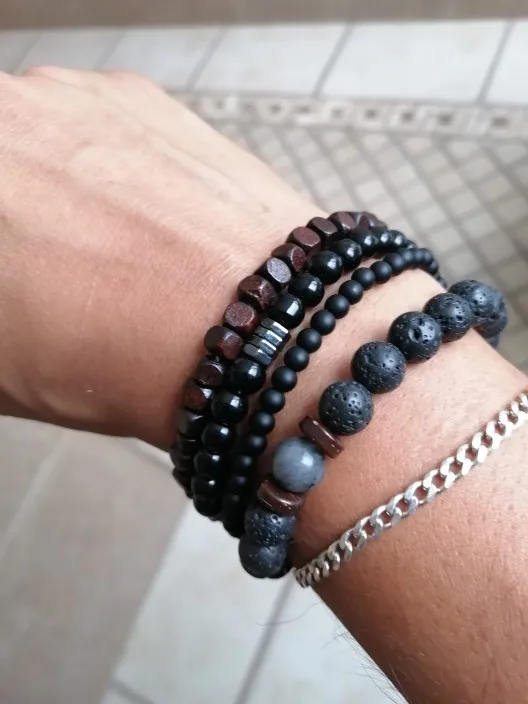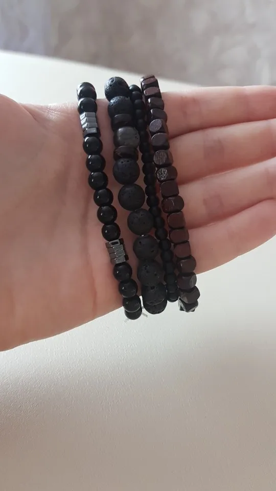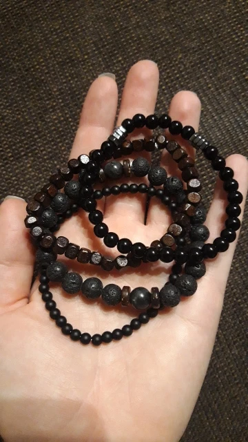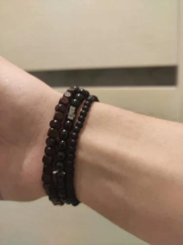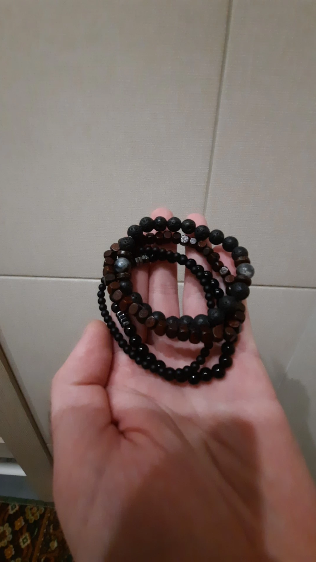Браслет прикольный, на моё узкое запястье очень даже хорошо сел. Из-за разного диаметра бусин мне показалось, что диаметр 4-х браслетов немного отличается, но при носке думаю это не сильно заметно. Качеством довольна. Очень уверенная четвёрка!