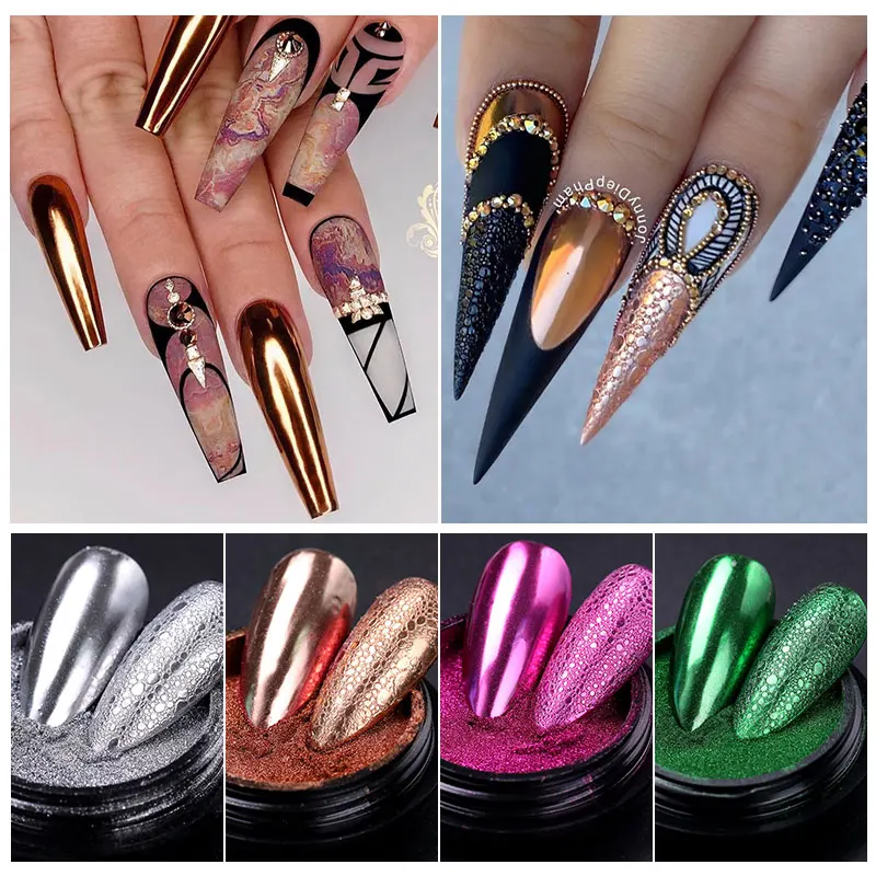 BORN Красивое Зеркало Блестящий Порошок для ногтей металлический блестящий золотой серебряный пигмент для ногтей мощный хромированный для гель-лака украшение для ногтей