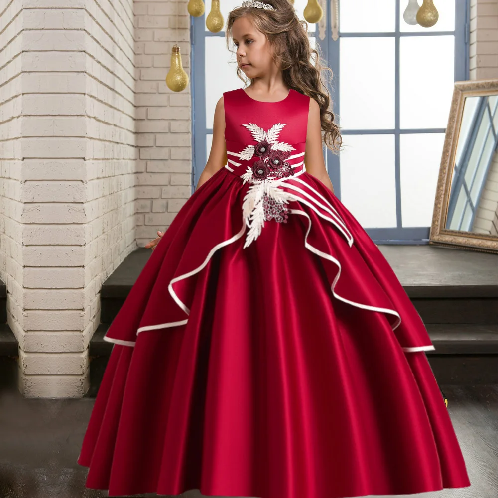 2022 Летнее Детское платье принцессы, платье для девочек с цветочной вышивкой, винтажное бальное платье для свадебвечерние, детская одежда