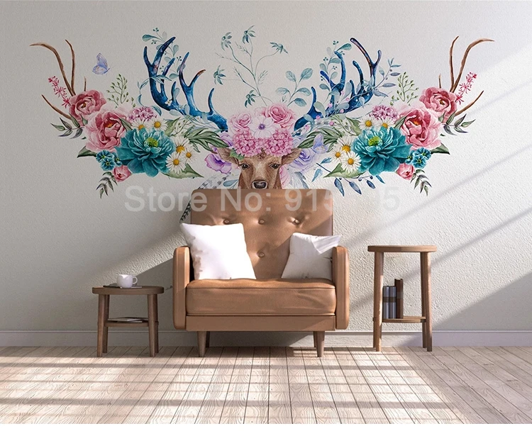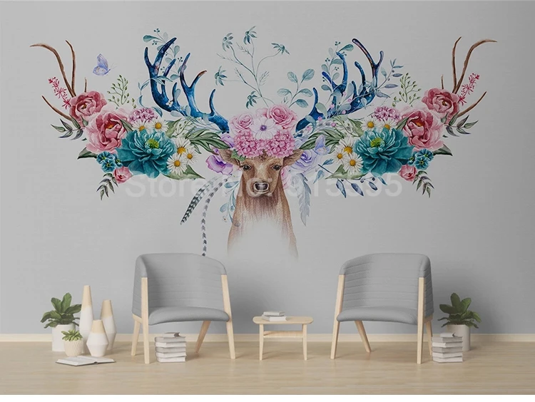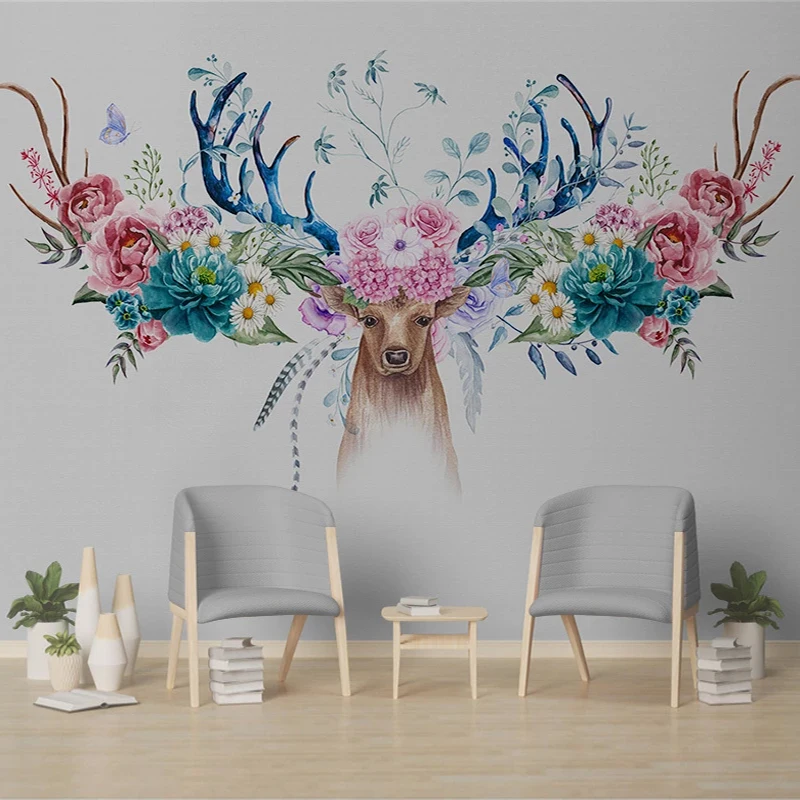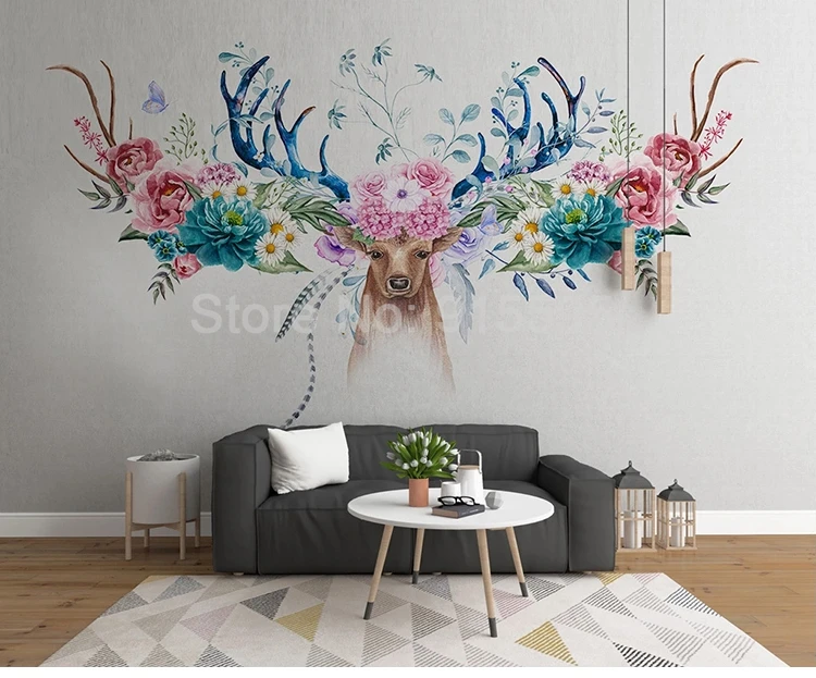 Пользовательские 3D настенные фрески обои Роскошные 3D рельеф олень...