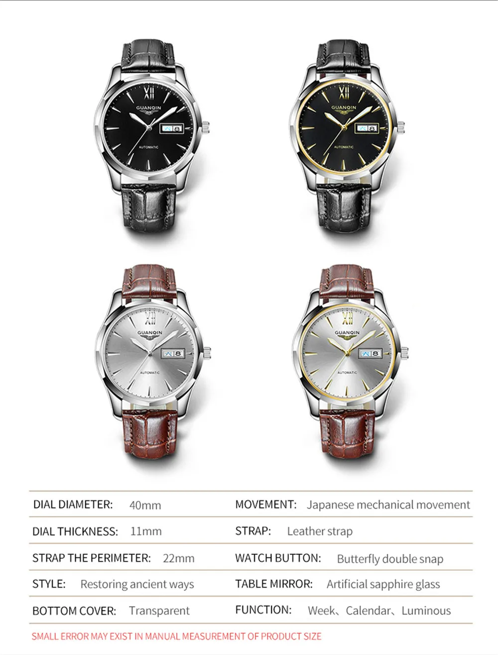 GUANQIN механические часы, мужские японские автоматические часы NH3...