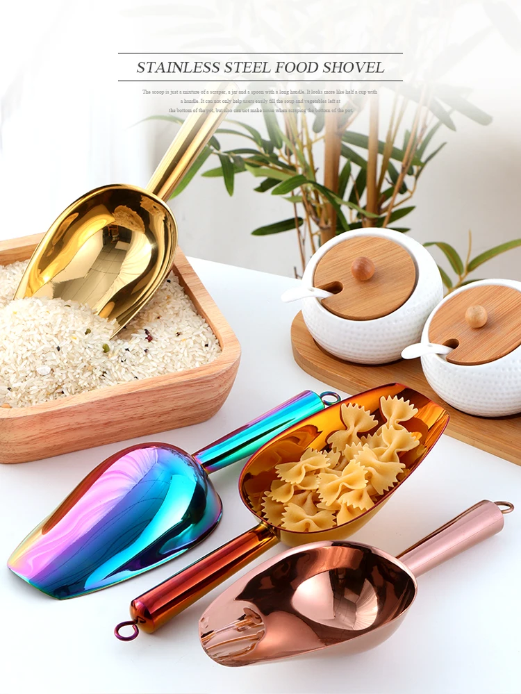 Лопатка для леденцов, 1 шт., разноцветная ложка для муки, конфет из нержавеющей стали, лопатка для бобов, ложки для еды, инструменты для буфета, кухонная утварь